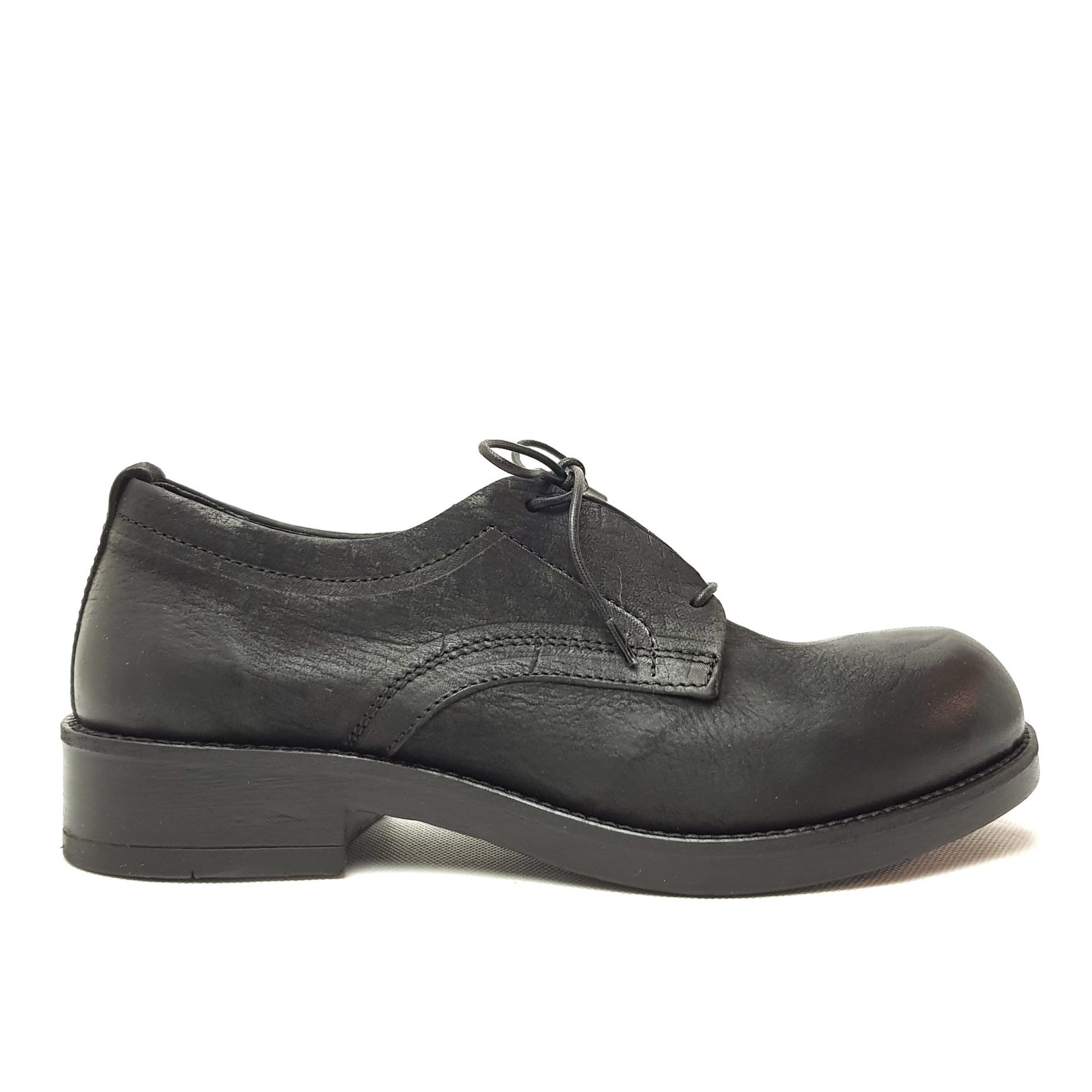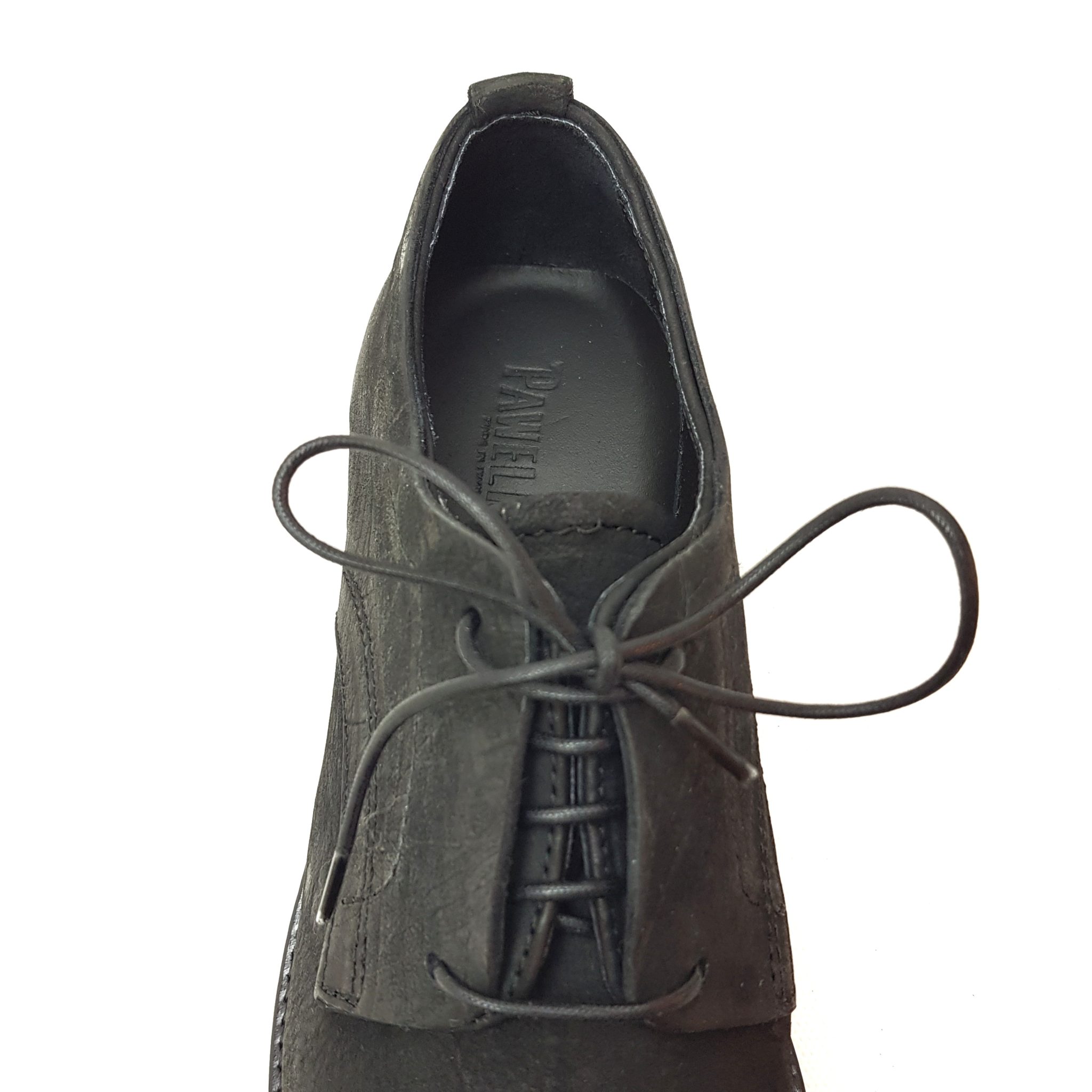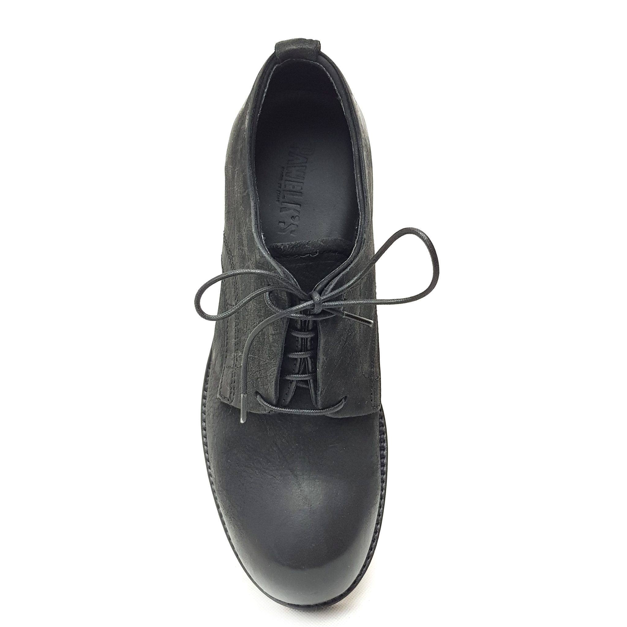 Pawelk’s w933 allacciato oxford in pelle nera. Fondo gomma.