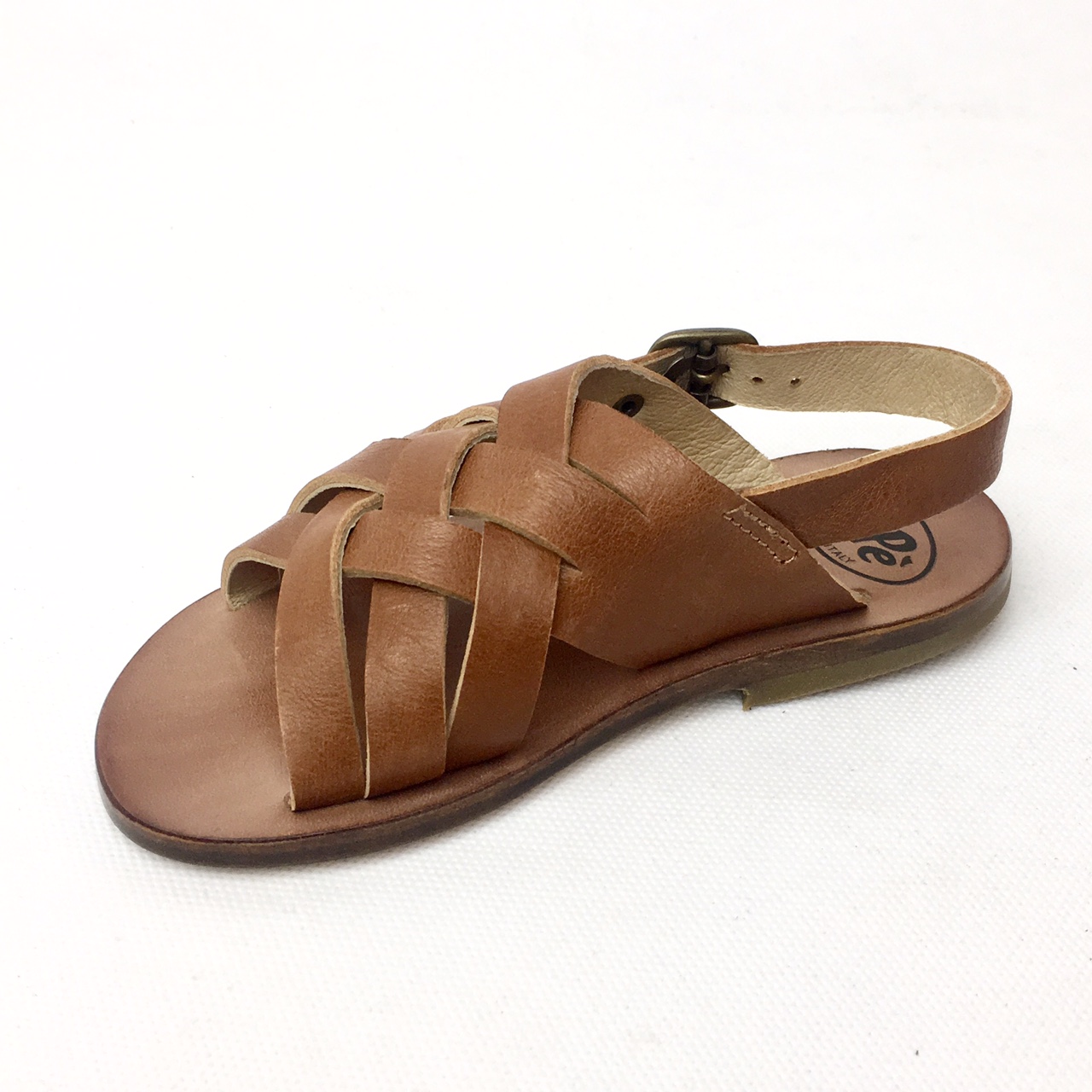 PèPè, sandalo in pelle vitello cuoio a taglio vivo, suola in vero cuoio flessibile, 100%Made in Italy, prodotto di alta qualità.