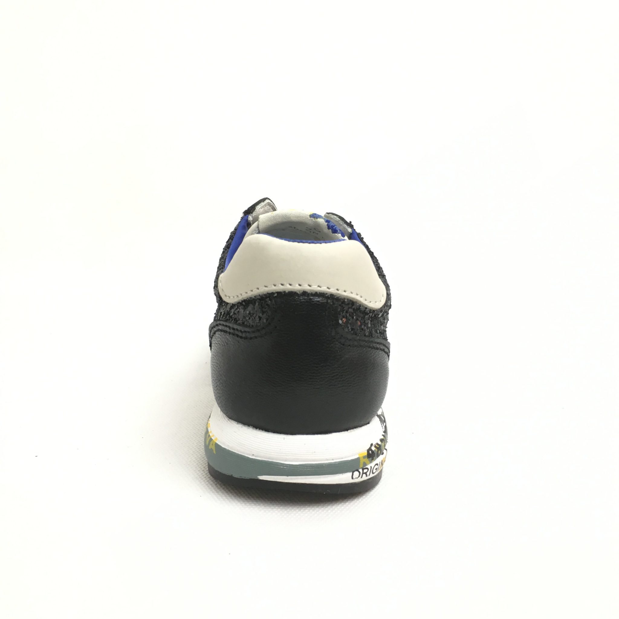 Premiata, ginnico bambino, in pelle glitter nero, allacciatura con stringhe, suola in gomma, 100% Made in Italy