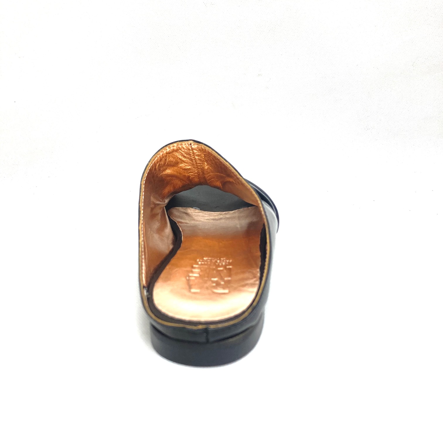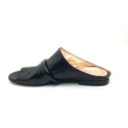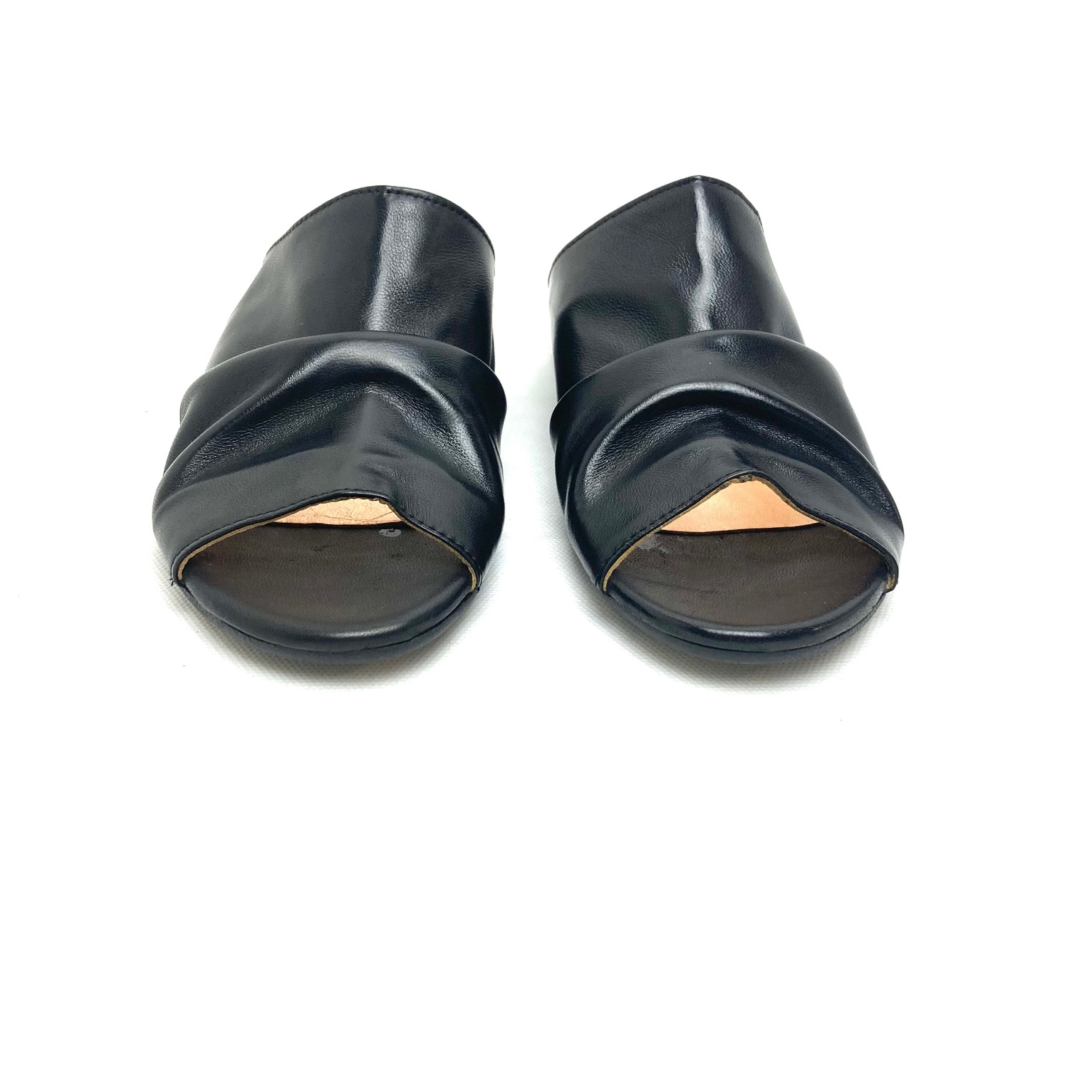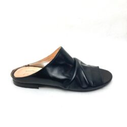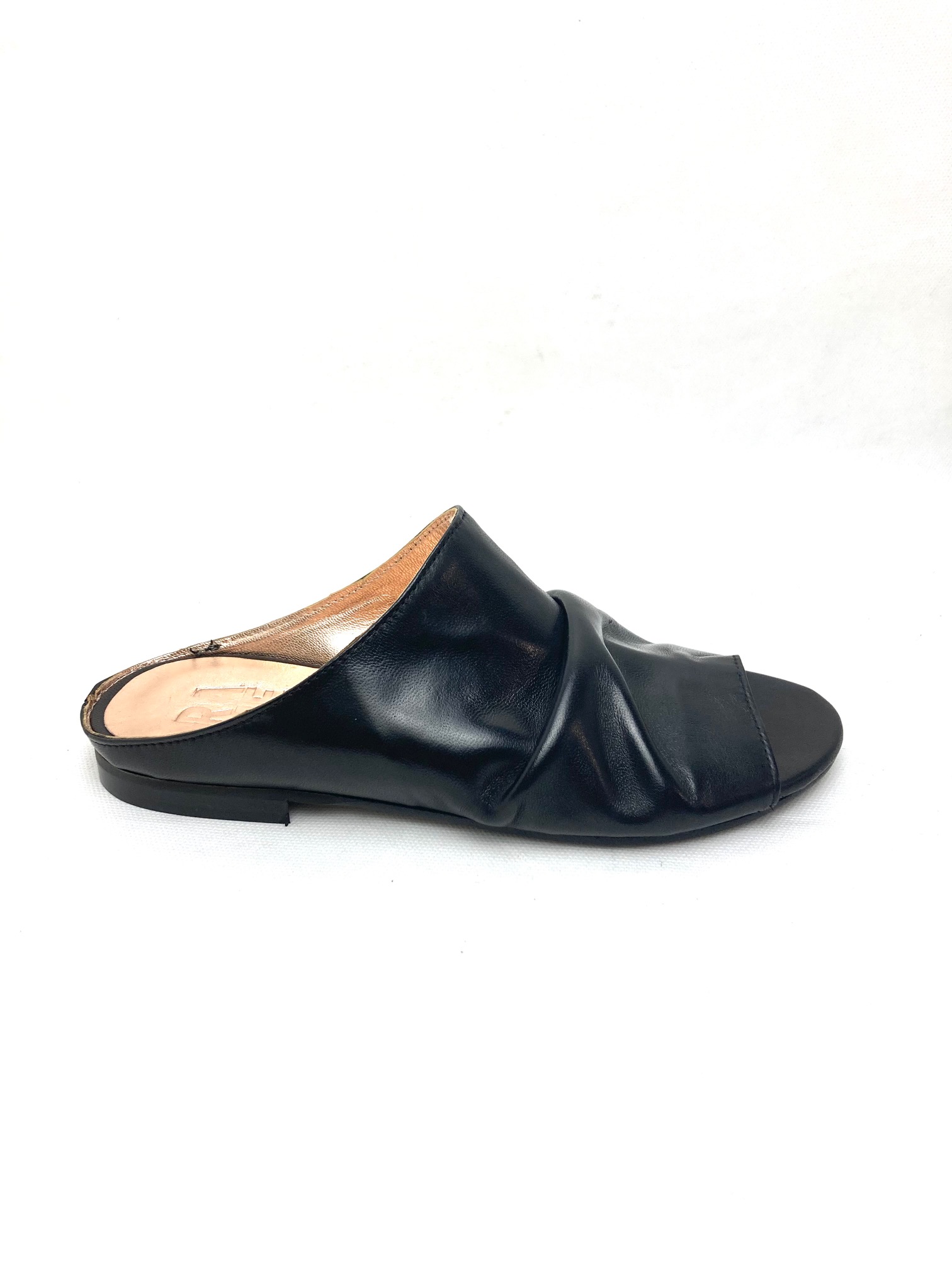 Ciabattina spuntata in nappa nera con arricciatura, fodera pelle, sottopiede in cuoio antiscivolo, tacco cm 1.