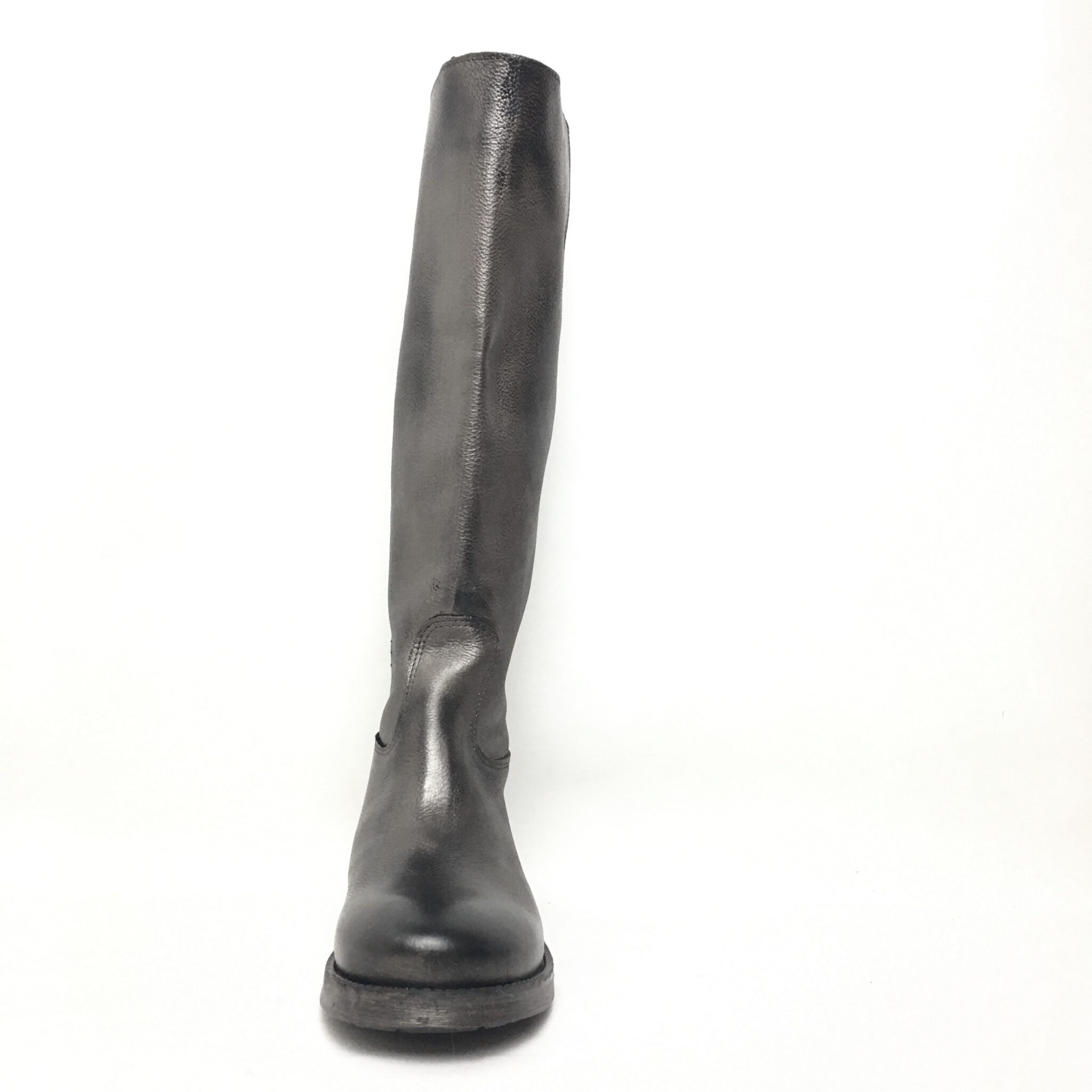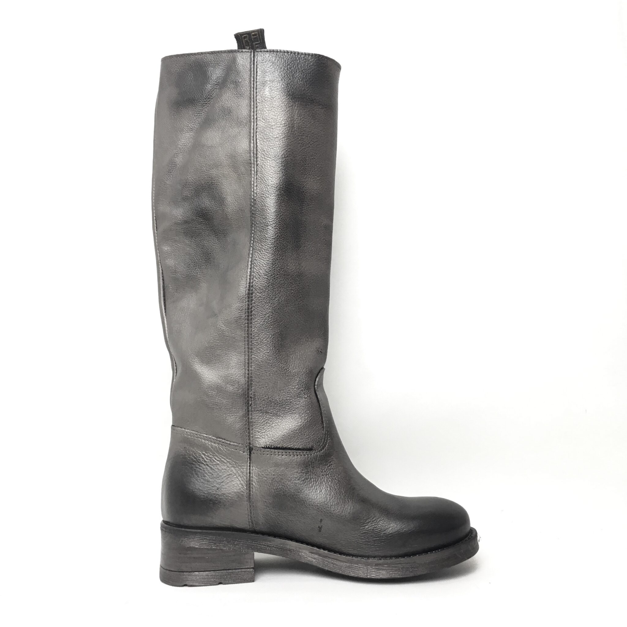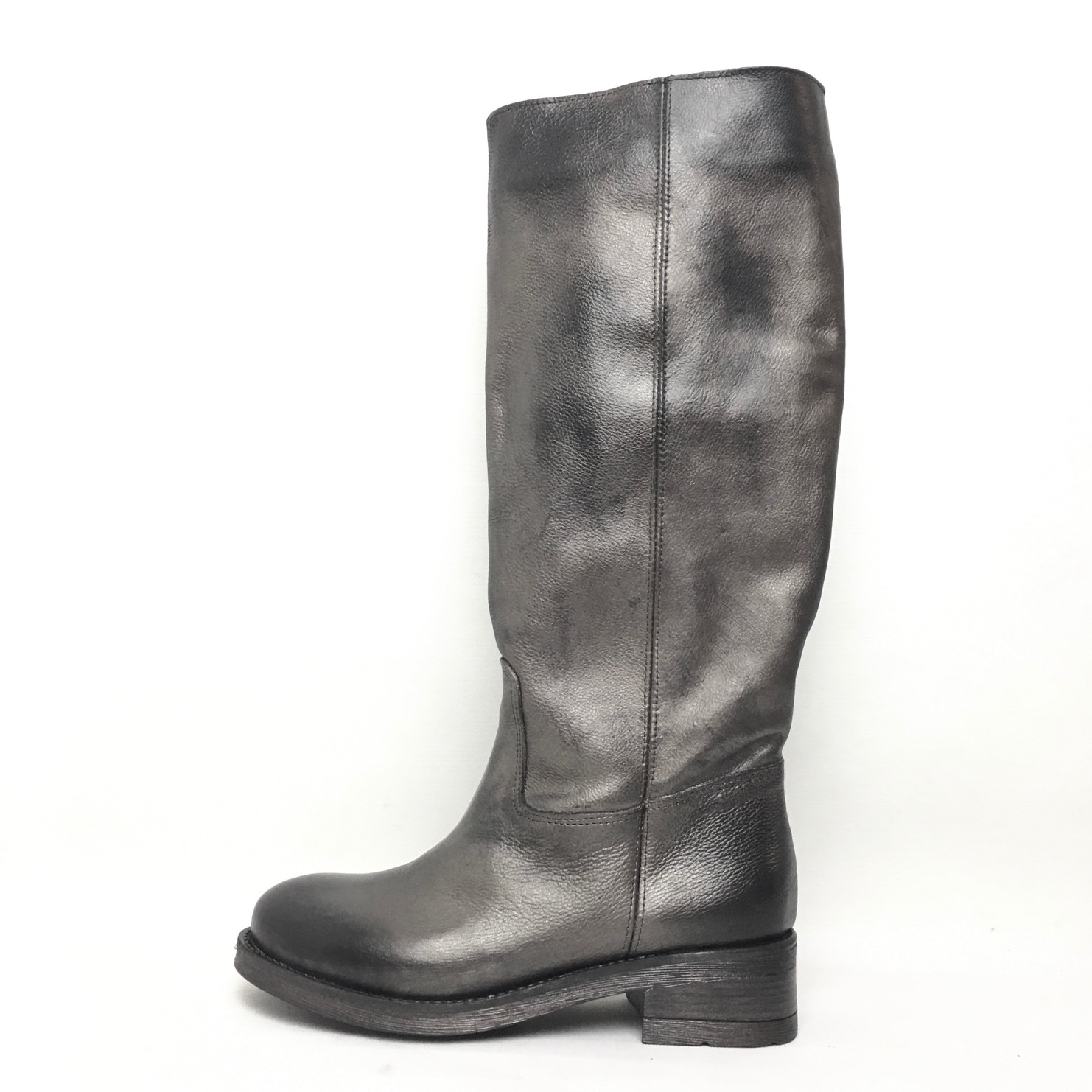 RAME stivale a tubo in pelle metal piombo, calzata a tubo, fodera pelle, suola gomma tacco cm 4.
