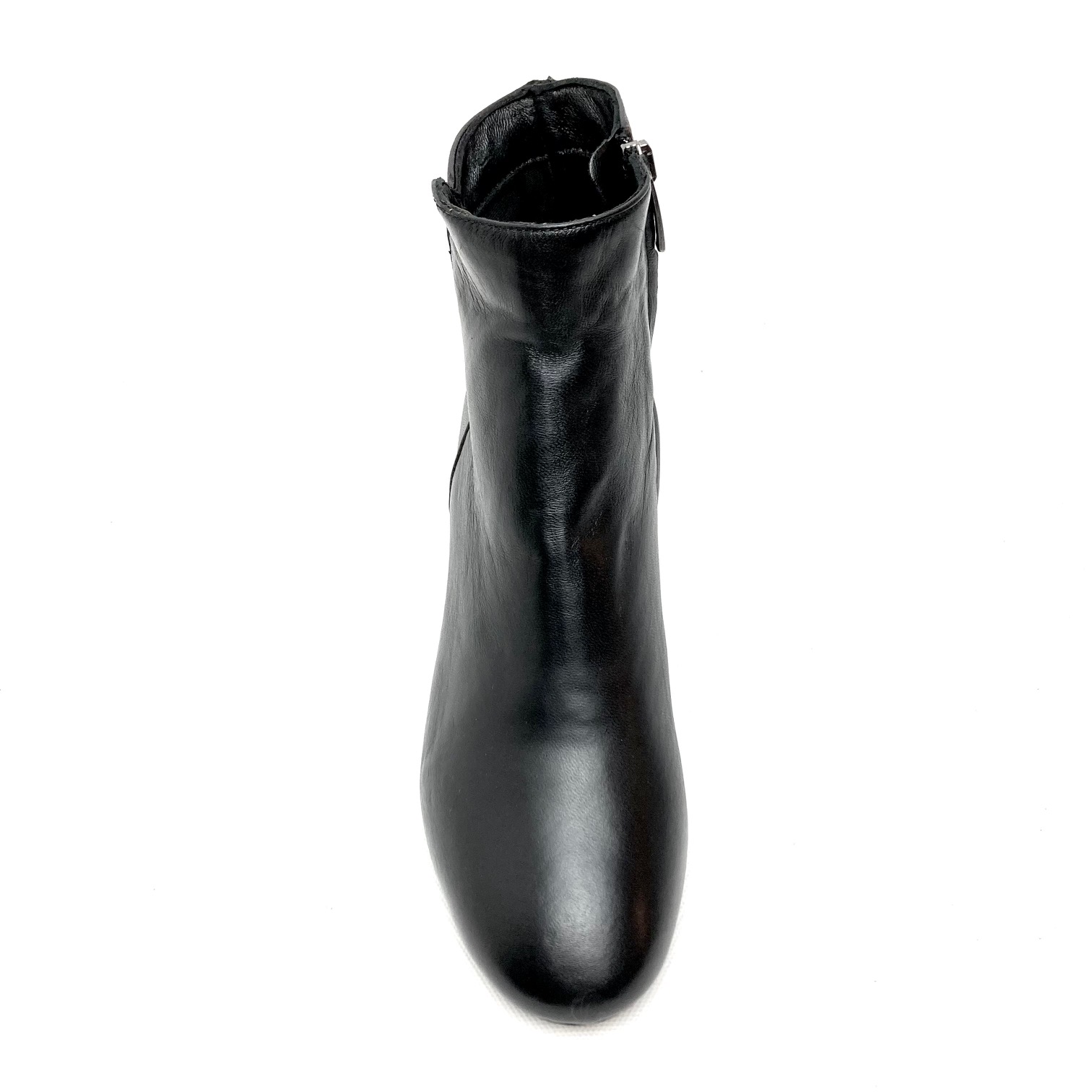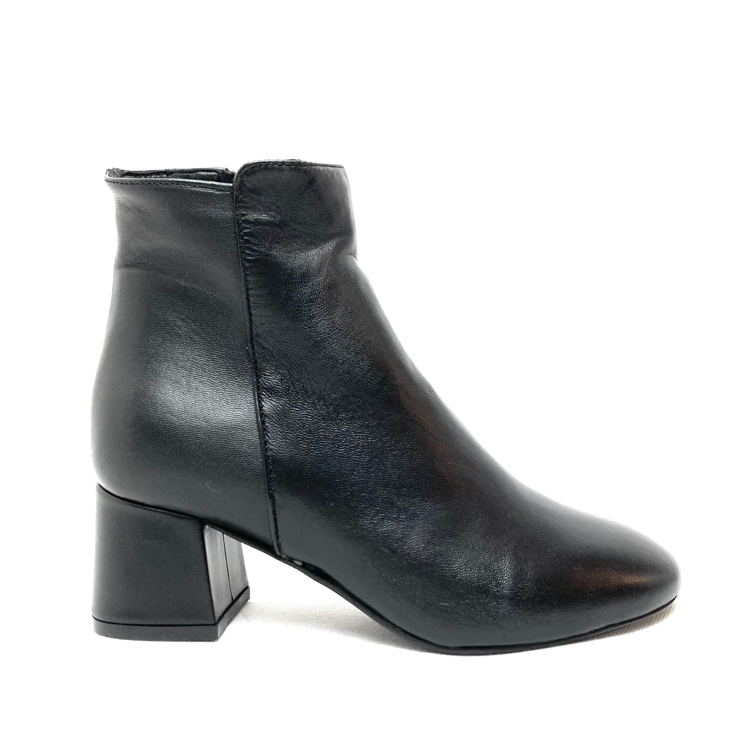 Tronchetto in pelle nera, con zip interna, tacco fasciato pelle h cm 5, prma arrotondata, suola gomma.100% Made in Italy