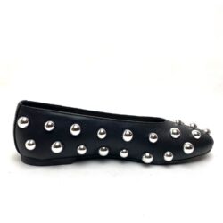 Ballerina in nappa nera decorata con borchie argento. Fodera pelle, sottopiede in memory esuola in gomma. 100% Made in Italy