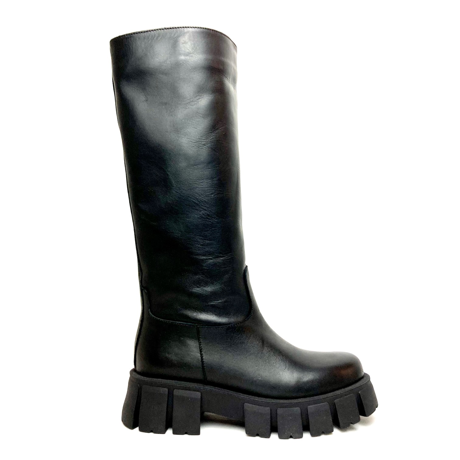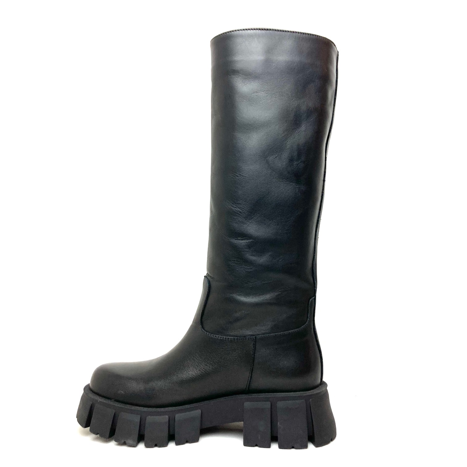 Ranyè art. BUD 25 stivale a tubo in pelle nera fondo prada.