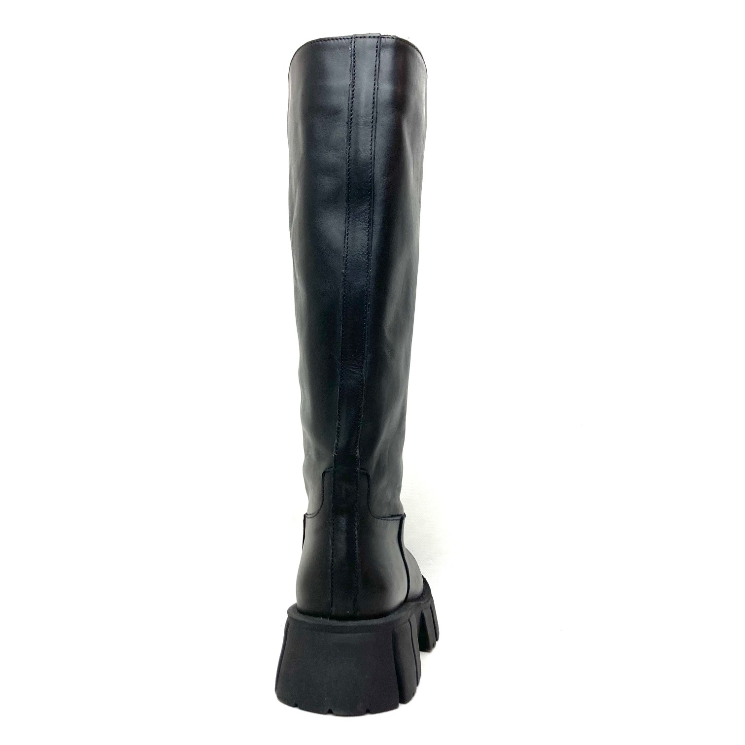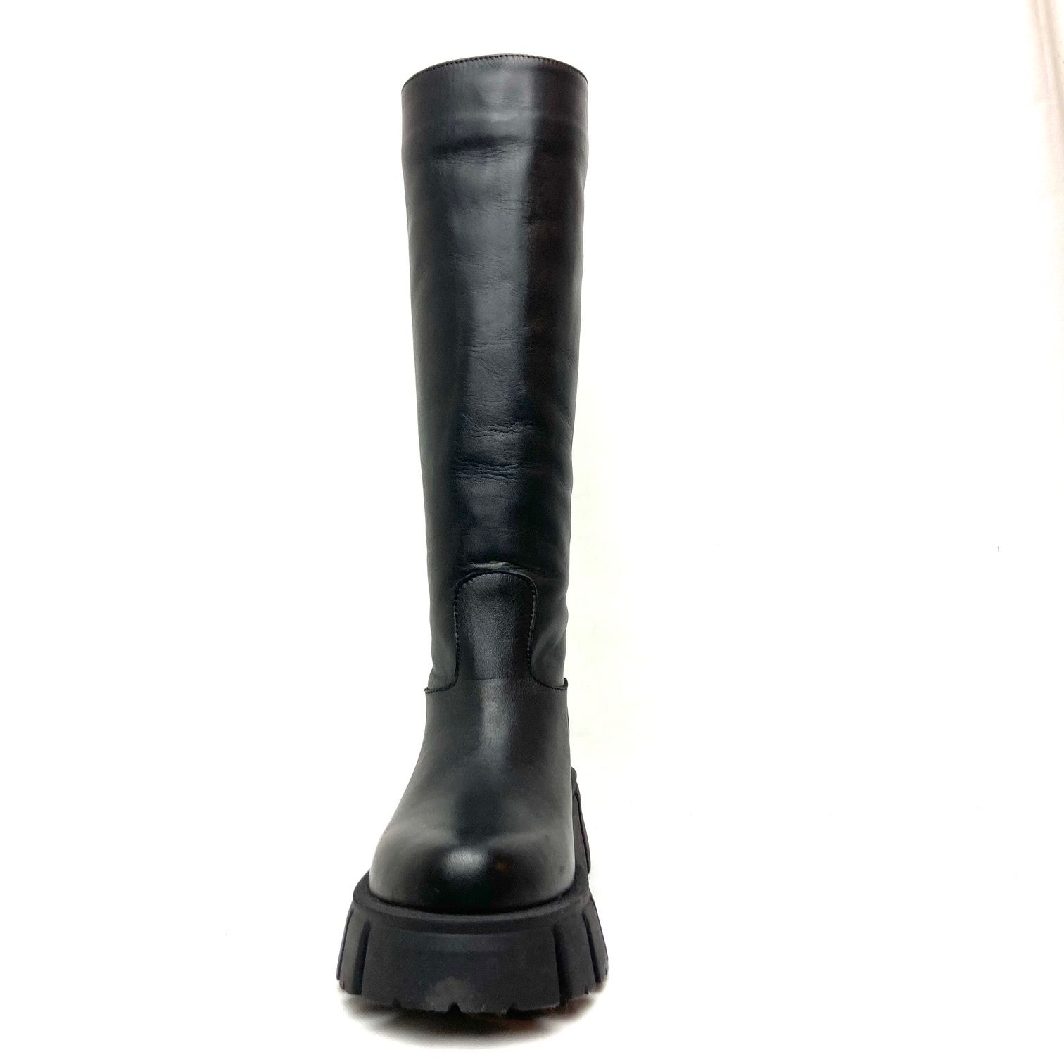 Stivale a tubo in pelle nera con gambale h cm 34,5. Suola prada in gomma, 100% Made in Italy