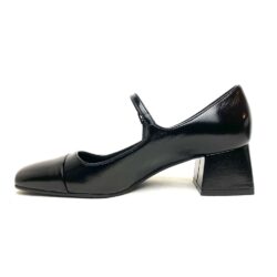 Scarpa Mary jane tacco cm 5 in pelle naplack nera, fodera pelle, sottopiede morbido e suola gomma. 100% Made in italy.