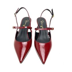 Chanel con laccetti regolabili da fibbia oro dalla forma a punta in morbida pelle naplack rubino,fodera pelle, sottopiede con memory.suola in gomma e tacco cm 5