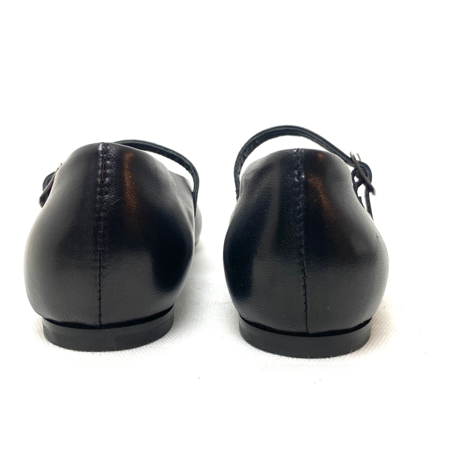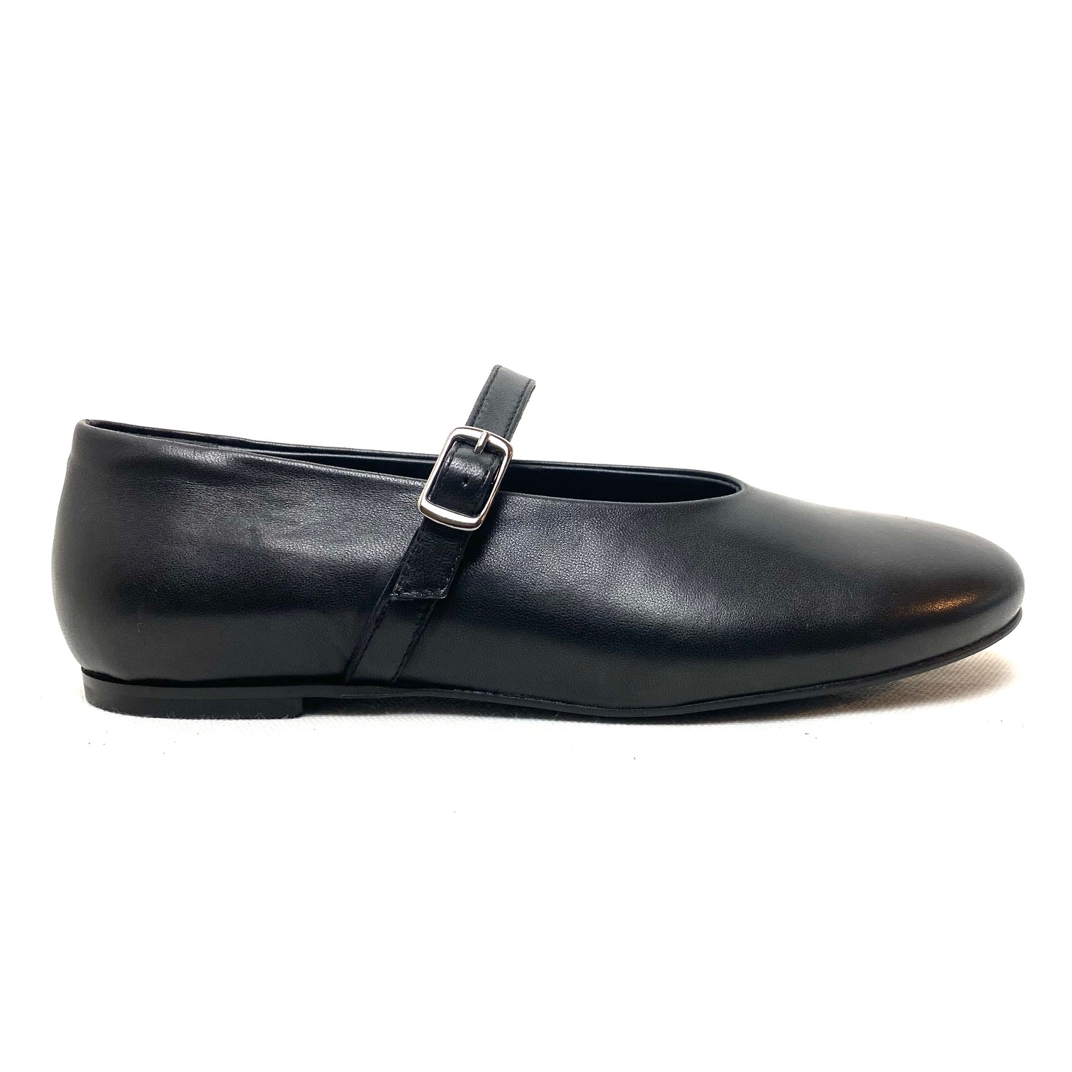 Ballerina molto morbida nuova versione più accollata in nappa nera e laccetto a bebè con fibbia argento, fodera pelle, sottopiede imbottito suola in gomma.