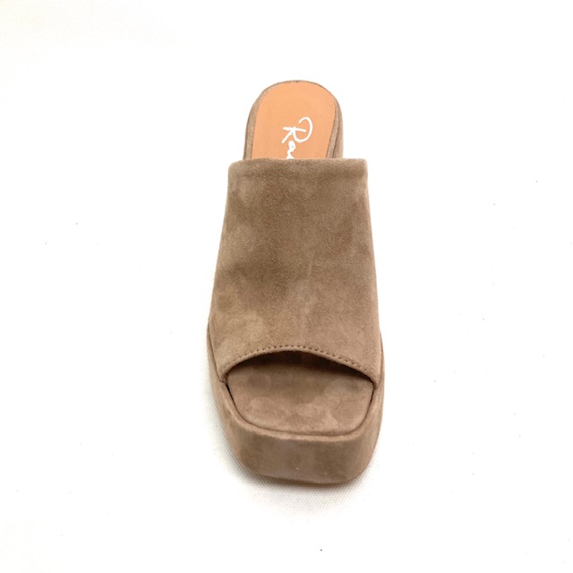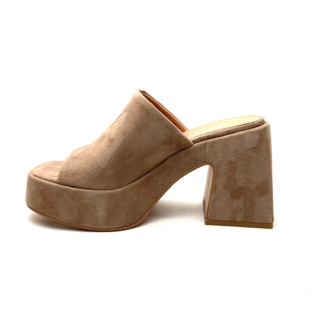 Zoccolo con plateau cm 4 fasciato in pelle scamosciata come la tomaia colore rosa antico, fodera pelle.
