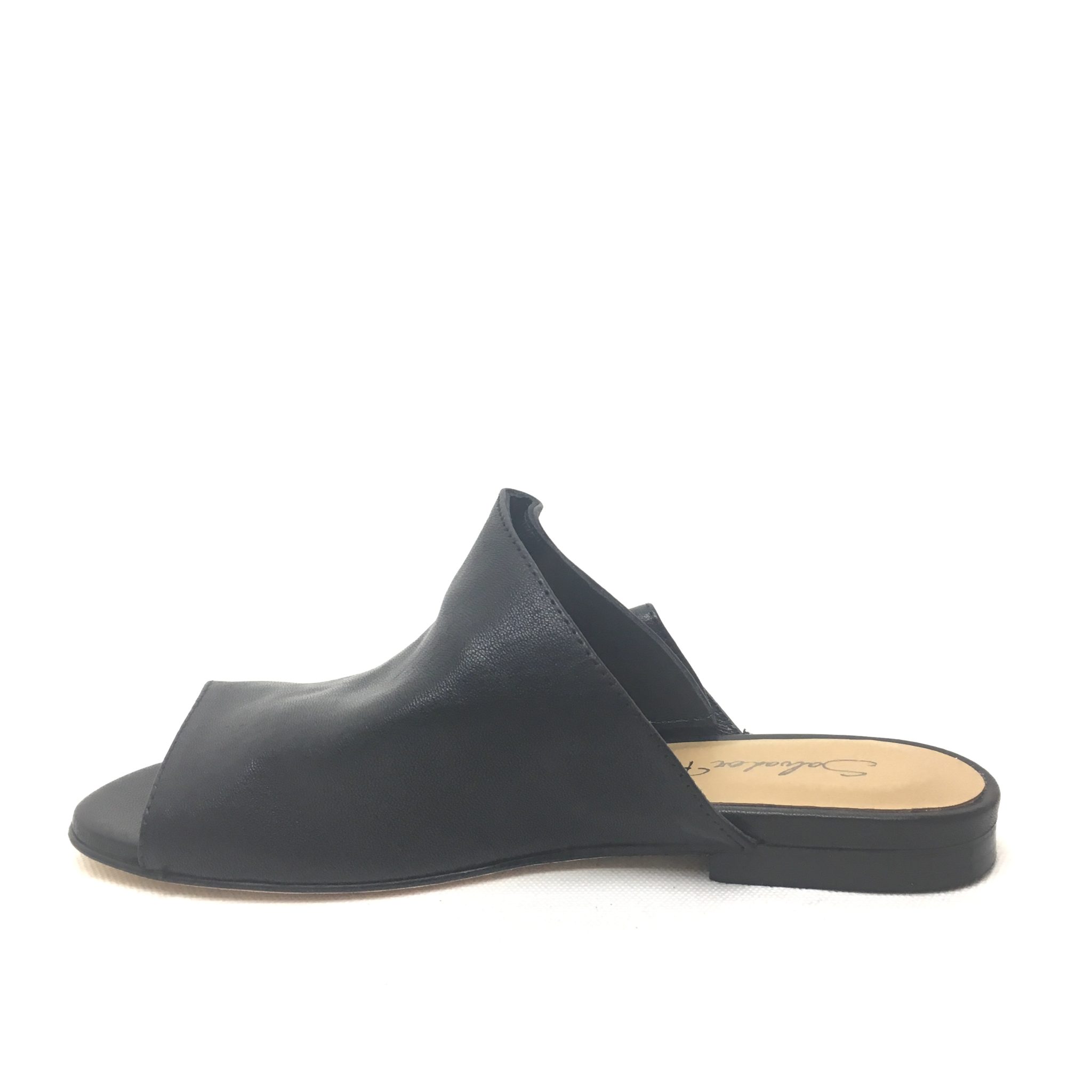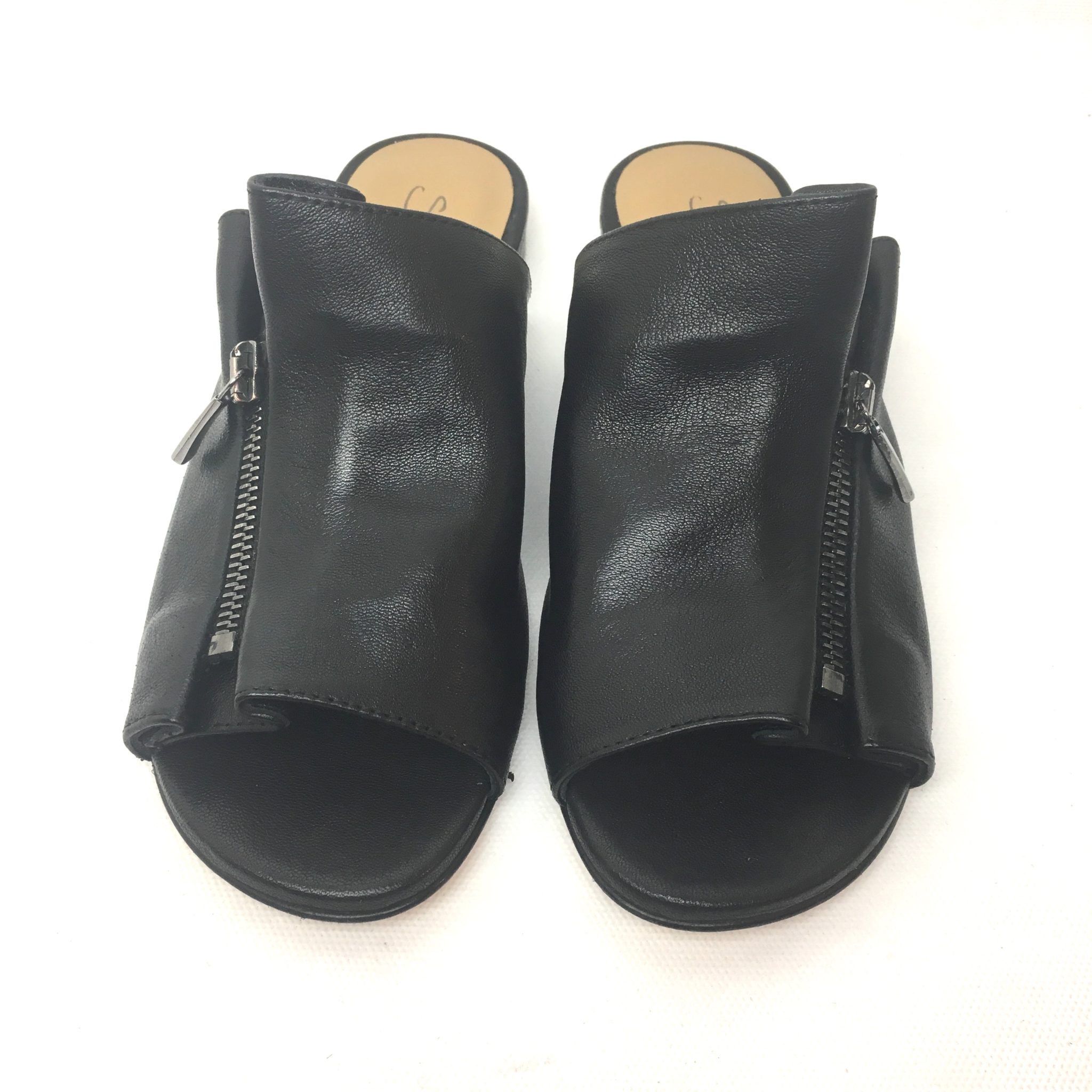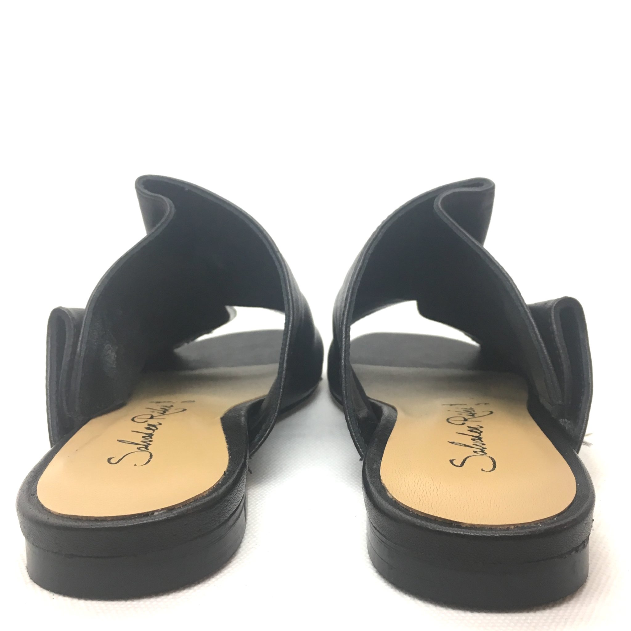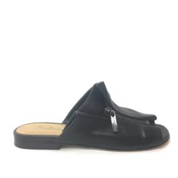 Salvador Ribes ciabattina bassa in pelle nera. Dettaglio rouches con zip. Fondo cuoio-gomma. Made in Italy.