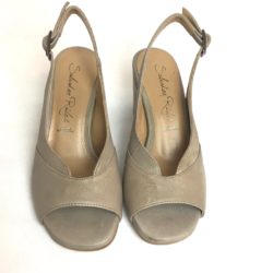 Salvador Ribes sandalo donna in vera pelle sabbia, modello chanel. Tacco 5 cm. Chiusura regolabile sul tallone. Fondo cuoio. Made in Italy