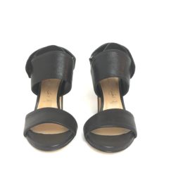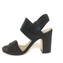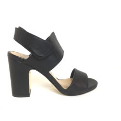 Salvador Ribes sandalo in vera pelle nera. Tacco 9 cm. Chiusura con fascia regolabile sul tallone in velcro.Fondo cuoio, gomma. Made in Italy
