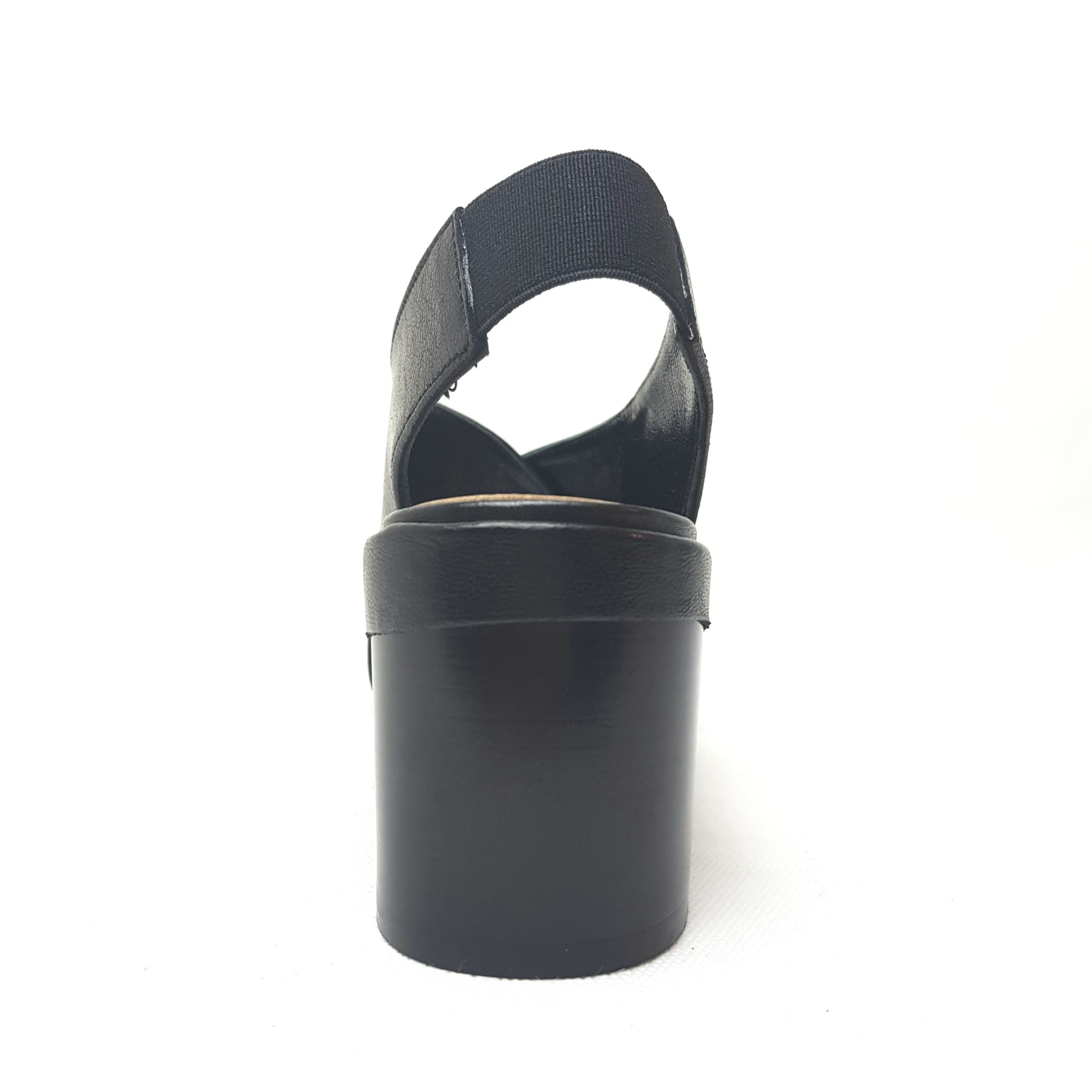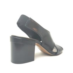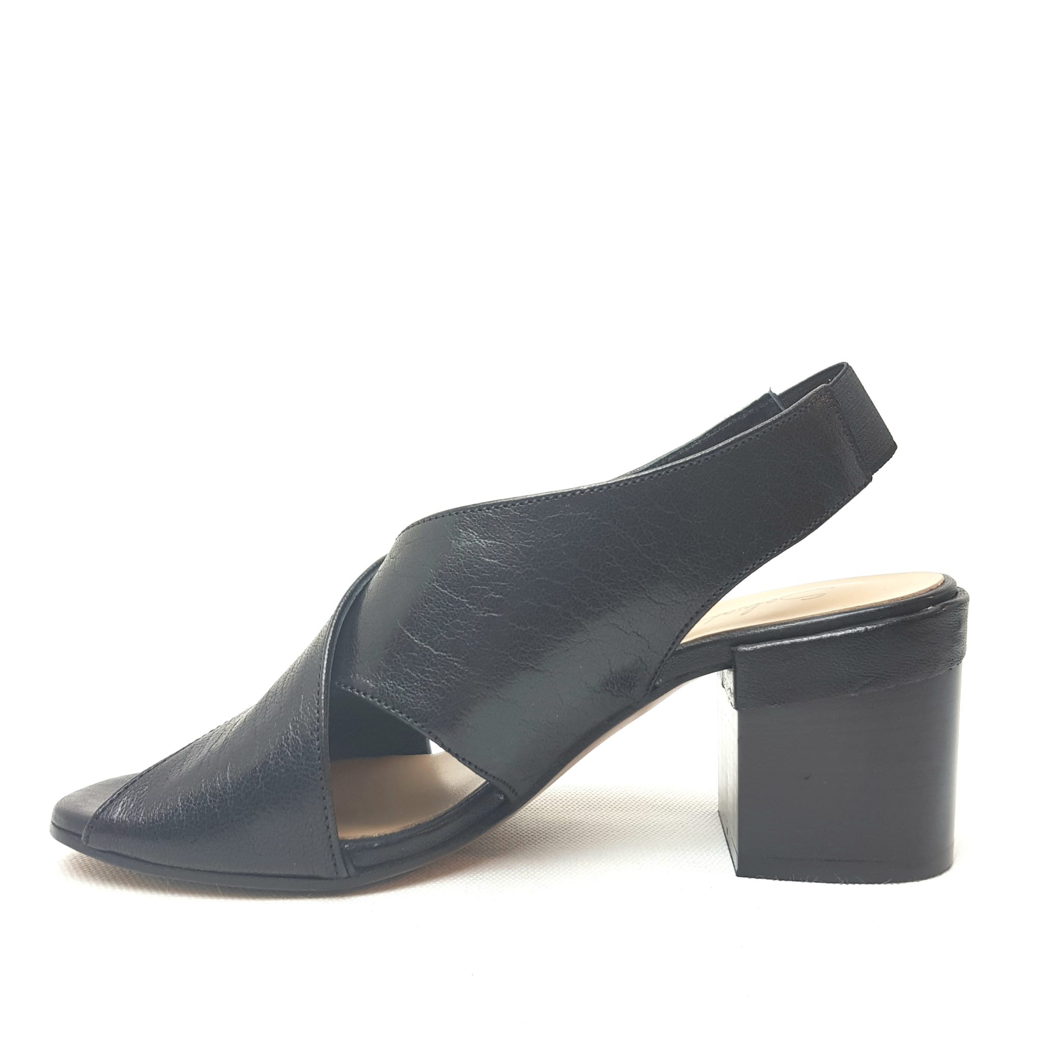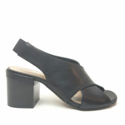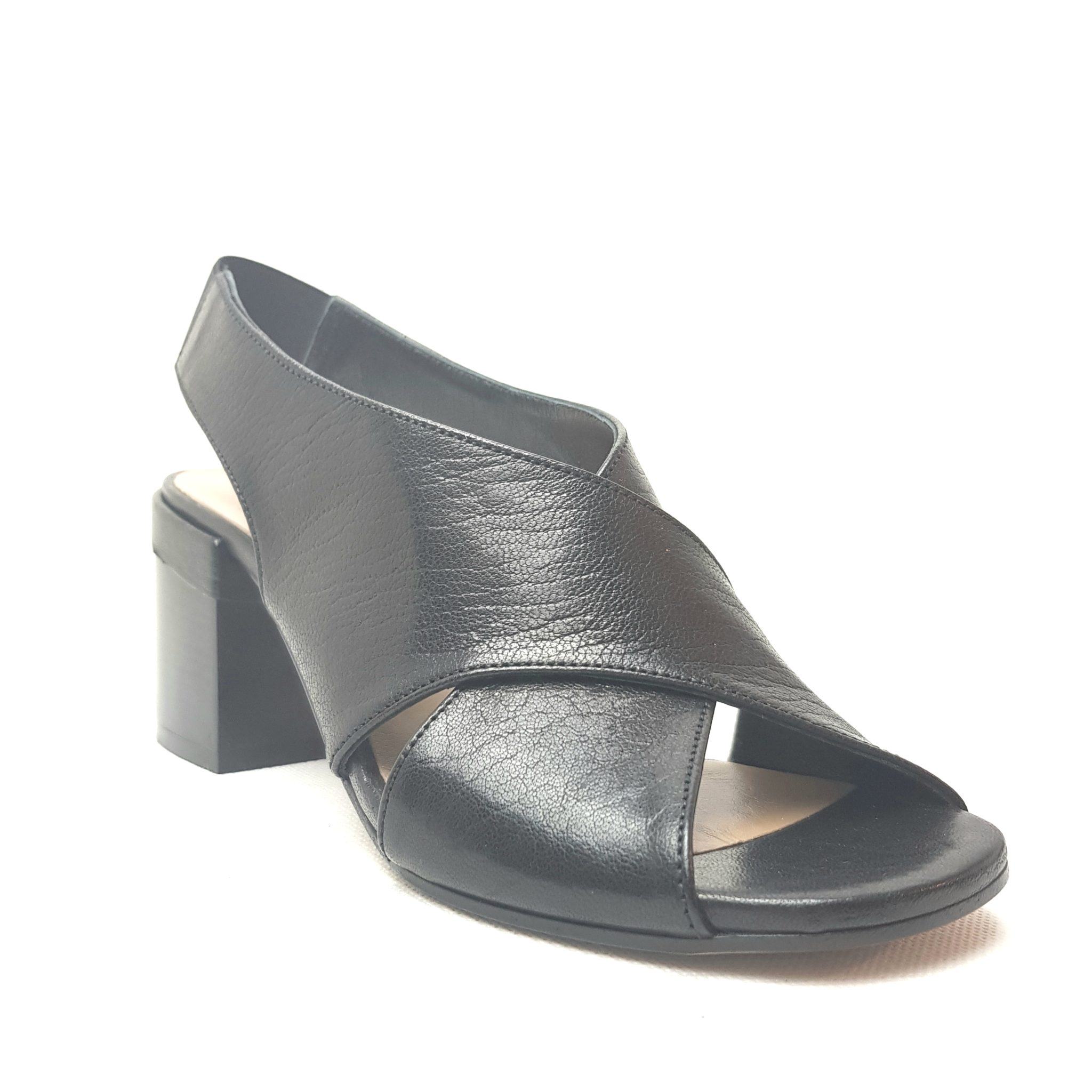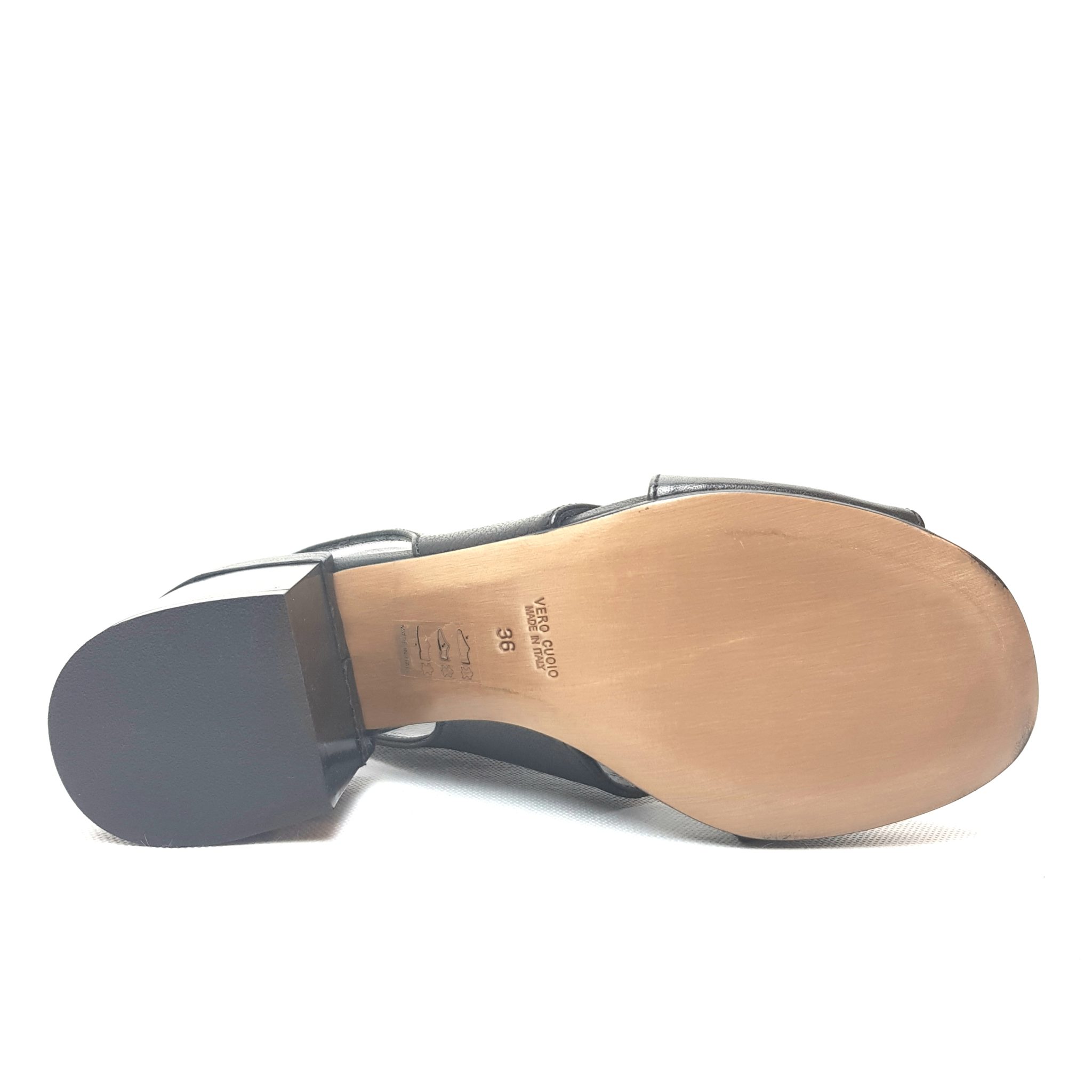 Salvador Ribes, sandalo nero a incrocio in vera pelle. Fondo cuoio. Elastico sul retro. Sottopiede imbottito. Tacco 6 cm. 100% Made in Italy