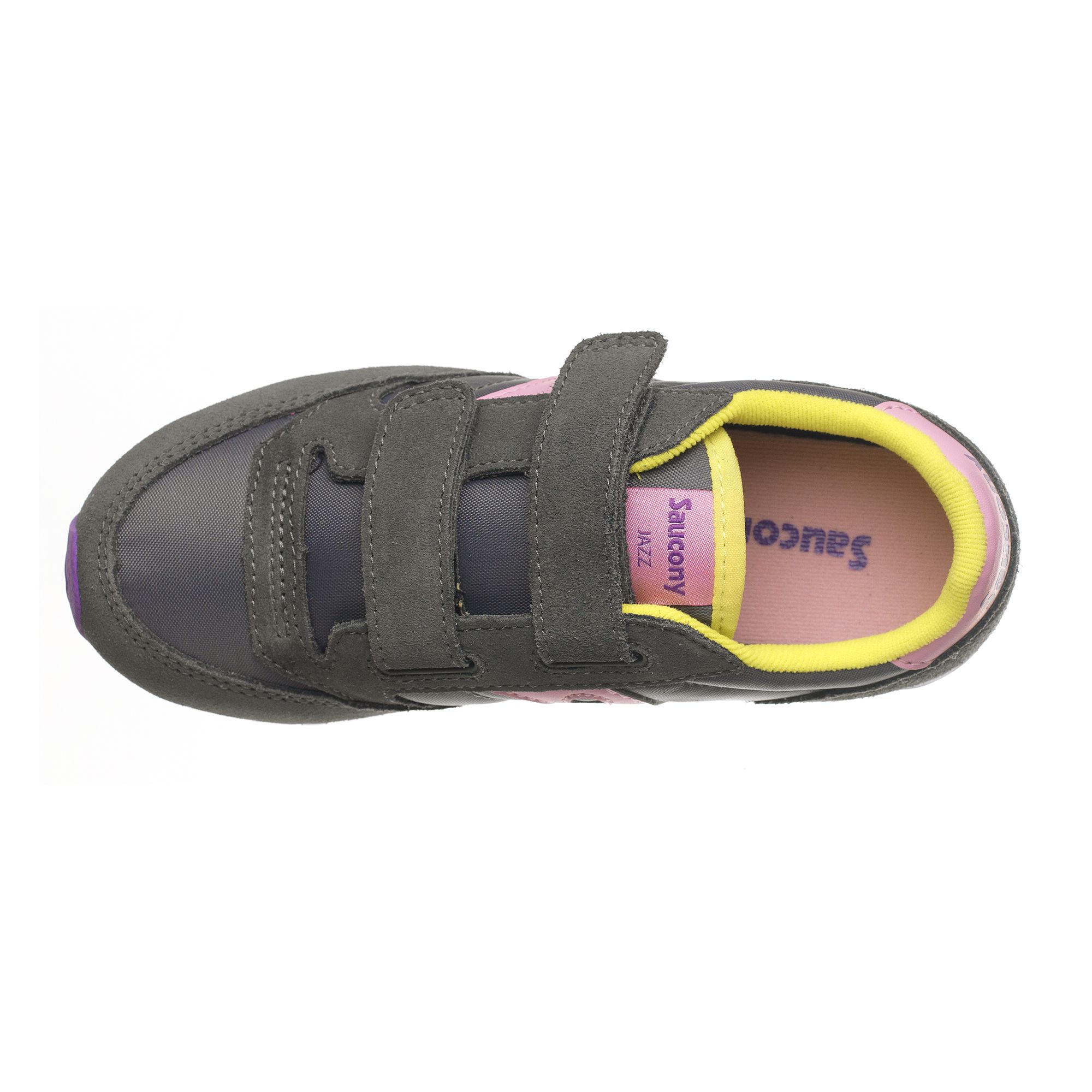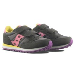 Ginnico bimbo in tela, pelle e pelle scamosciata. Colore:grigio, dettagli rosa. Allacciatura tramite strappo e stringa nei n. 36-37-38. Suola in gomma.