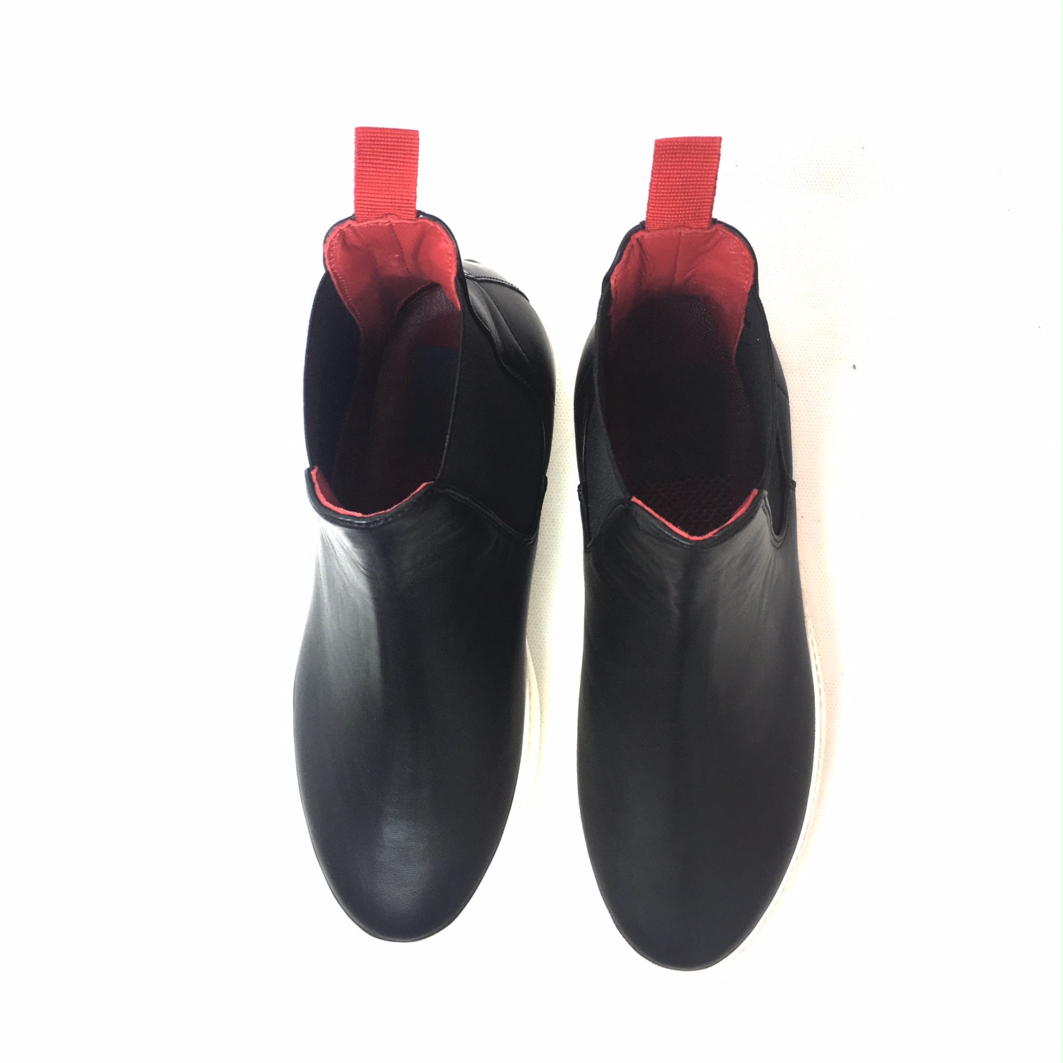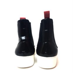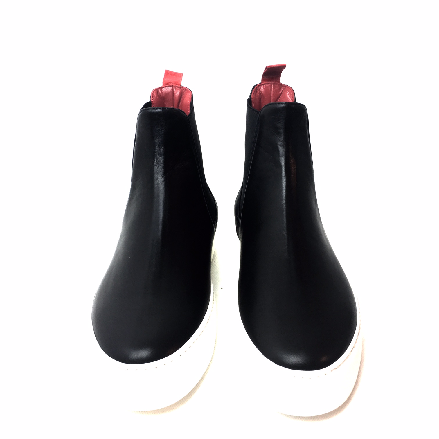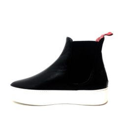 Sax, scarponcino modello chelsea in pelle nappa nero, fondo gomma bianco platform cm 4, plantare anatomico estraibile, fodera in pelle rossa.