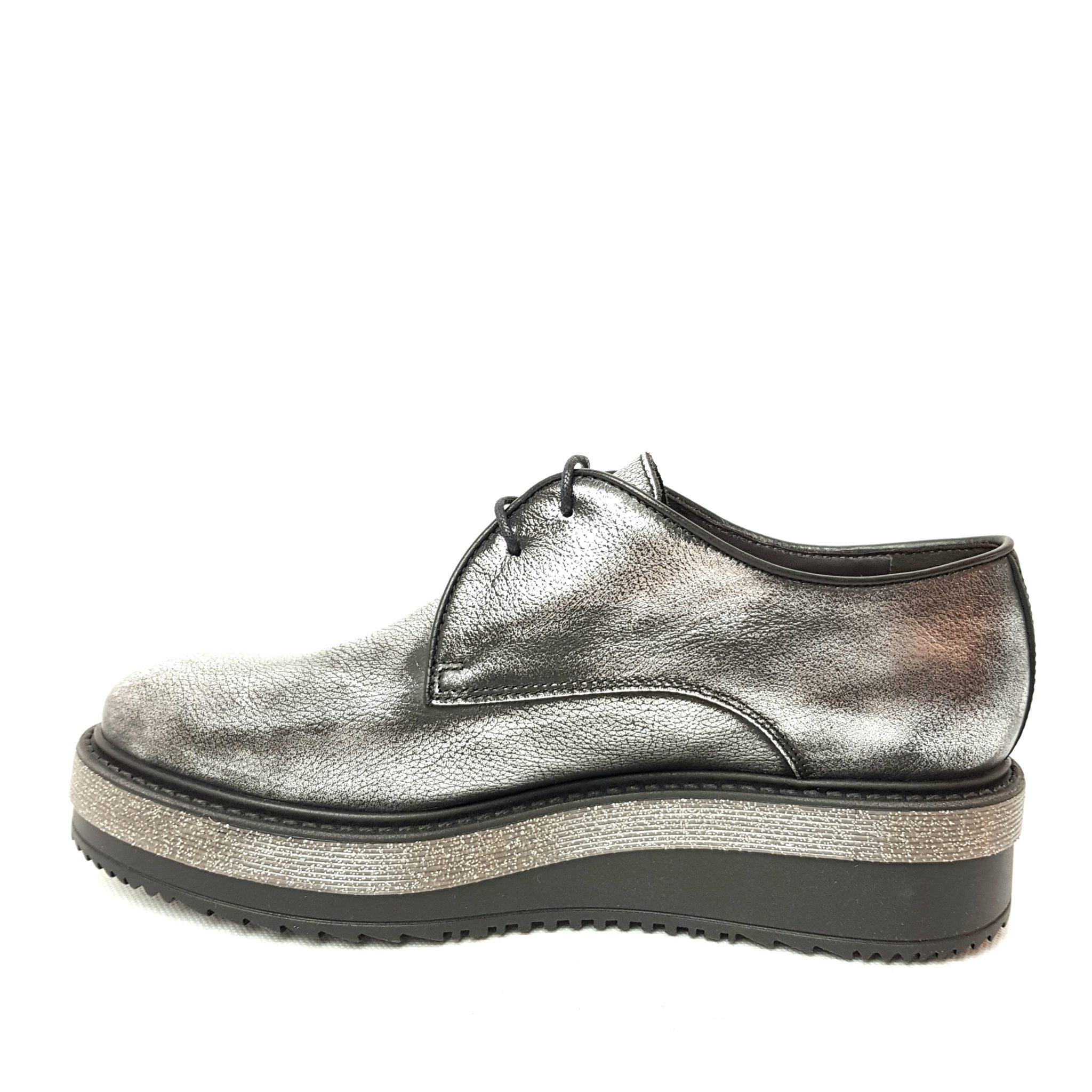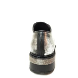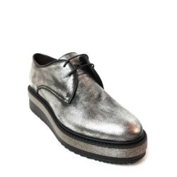 Allacciato effetto metallic in pelle argento. Fondo gomma. Para 4 cm. Made in Italy.