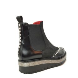Stivaletto Chelsea in pelle nera e tessuto elasticizzato. Applicazioni: borchie in metallo argentato. Fondo gomma. Para 4 cm. Made in Italy.
