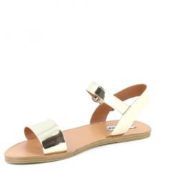 Sandalo a fascia in ecopelle metallica dorata. Suola in gomma