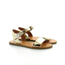 Sandalo a fascia in ecopelle metallica dorata. Suola in gomma