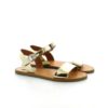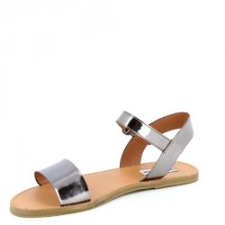 Sandalo a fascia in ecopelle, colorazione pewter metallic. Disponibile anche nella colorazione oro. Suola in gomma