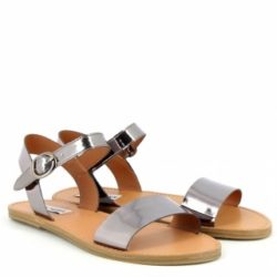 Sandalo a fascia in ecopelle, colorazione pewter metallic. Disponibile anche nella colorazione oro. Suola in gomma