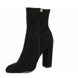 Steve Madden Editt tronchetto in microsuede nero. Tacco fasciato 10 cm. Zip laterale. Fondo eco cuoio