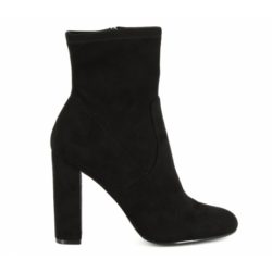 Steve Madden Editt tronchetto in microsuede nero. Tacco fasciato 10 cm. Zip laterale. Fondo eco cuoio