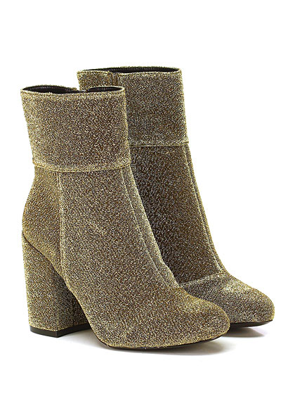 Tronchetto in tessuto lurex disponibile nelle varianti oro e argento. Altezza tacco 10 cm