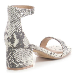 Steve Madden sandalo in simil pelle stampa pitone. Tacco 6 cm foderato. Tallone chiuso. Chiusura con cinturino alla caviglia regolabile. Fondo gomma.