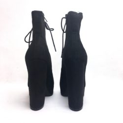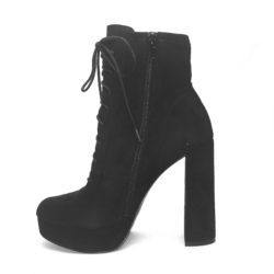 Stivaletto in ecopelle suede nero con allacciatura 9 fori e zip laterale, suola in gomma con plateaux cm 2, tacco campana cm 12.