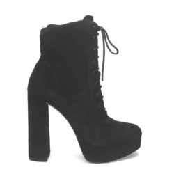 Stivaletto in ecopelle suede nero con allacciatura 9 fori e zip laterale, suola in gomma con plateaux cm 2, tacco campana cm 12.