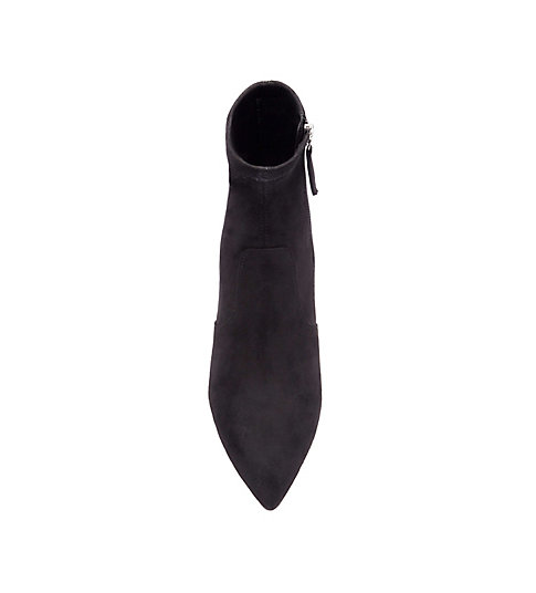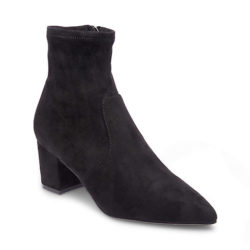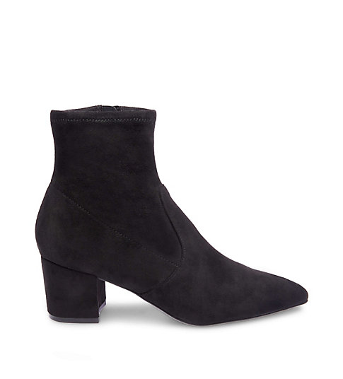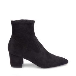 Steve Madden tronchetto a punta in micro suede nero. Tacco fasciato 6 cm. Zip laterale.