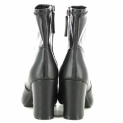 Steve Madden tronchetto in eco pelle elasticizzata nera, tacco a blocco. Zip laterale. Tacco fasciato 8 cm. Fondo eco cuoio. Fodera in tessuto.