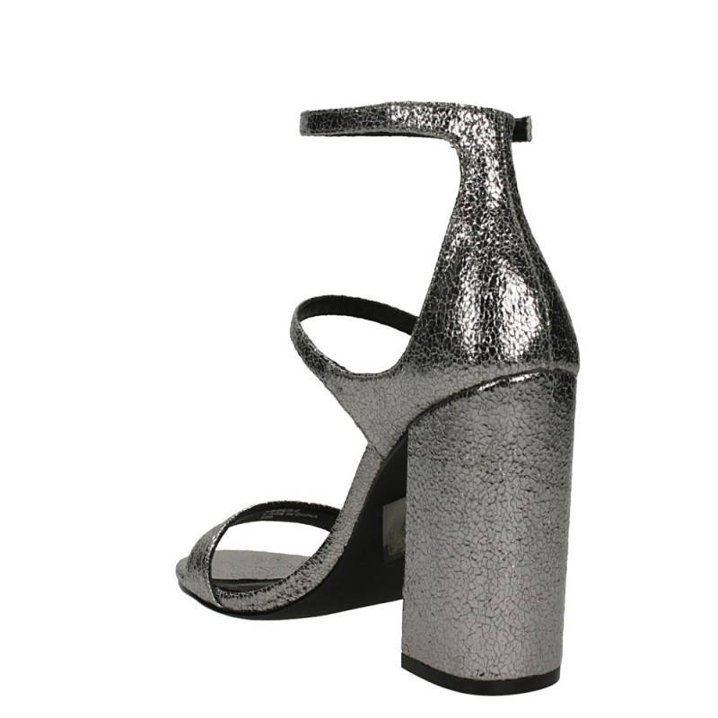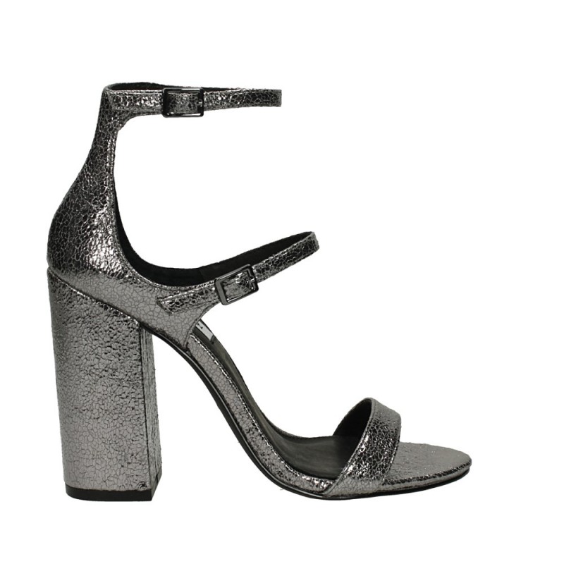 Steve Madden, sandalo in pelle cracrè lamianta argento. Tacco 10 cm. Sottopiede imbottito, suola gomma.