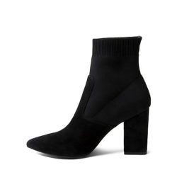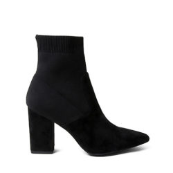 Steve Madden Renne tronchetto nero a punta in ecosuede e tessuto elasticizzato. Tacco 8 cm. Suola in cuoio sintetico.