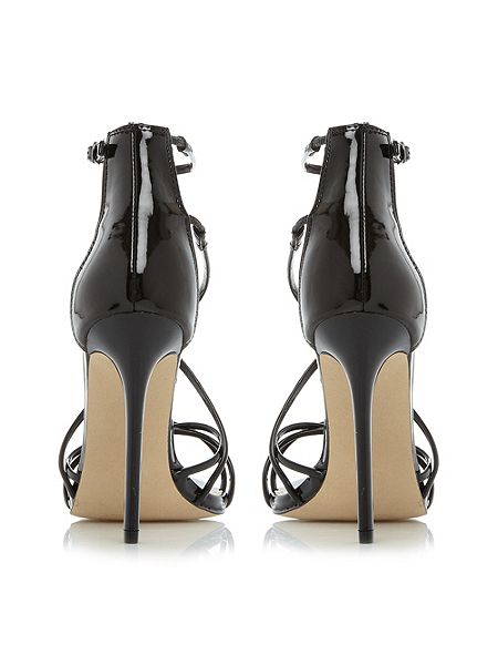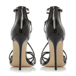 Steve Madden, sandalo tacco a spillo cm 10 in pelle vernice nero, zip dietro, sottopiede imbottito e suola gomma.