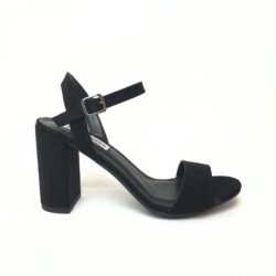 Steve Madden sandalo in microsuede nero o verniche blush con allacciatura regolabile alla caviglia. Tacco 8 cm. Fondo gomma