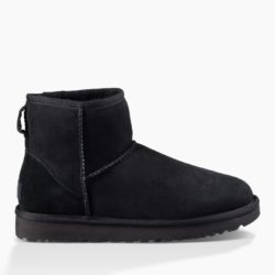 UGG,Classic Mini, stivale in pregiato montone rovesciato e pelle scamosciata pretrattato per essere protetto da acqua e macchie, soletta in vello di pecora, rifiniture in nylon, altezza del gambale: 13,97 cm, suola Treadlite by UGG™, che offre livelli eccezionali di ammortizzazione, resistenza e trazione. Disponibile nei colori: black, grey, spruce, chestnut