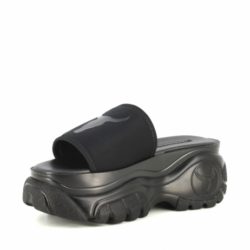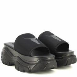 Windsor Smith slides platformin neoprene nero. Logo su fascia. Tacco 7 cm platform 6 cm. Zeppa e suola in gomma.