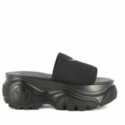 Windsor Smith slides platformin neoprene nero. Logo su fascia. Tacco 7 cm platform 6 cm. Zeppa e suola in gomma.