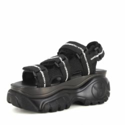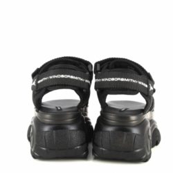 Windsor Smith sandalo platform in tessuto. Tacco 7,5 cm- platform 6 cm, battuta 1,5 cm. Multi strap sul collo del piede e sul retro. Zeppa e suola in gomma.