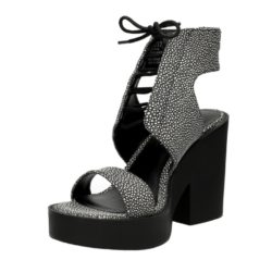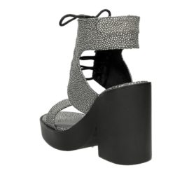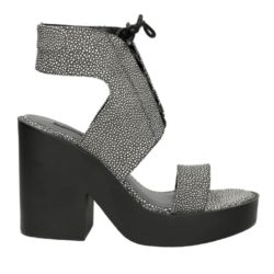 Windsor Smith, sandalo in pelle puntinata bianco nero, con allacciatura alla caviglia, sottopiede imbottito e suola in gomma cm 3 tacco cm 10.
