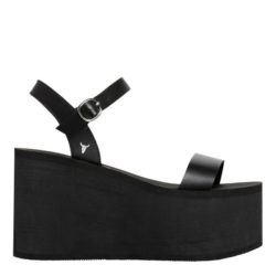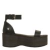 Windsor Smith sandalo platform in pelle nera. Tacco 10,5 cm. Fibbia regolabile alla caviglia. Zeppa in gomma.