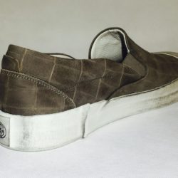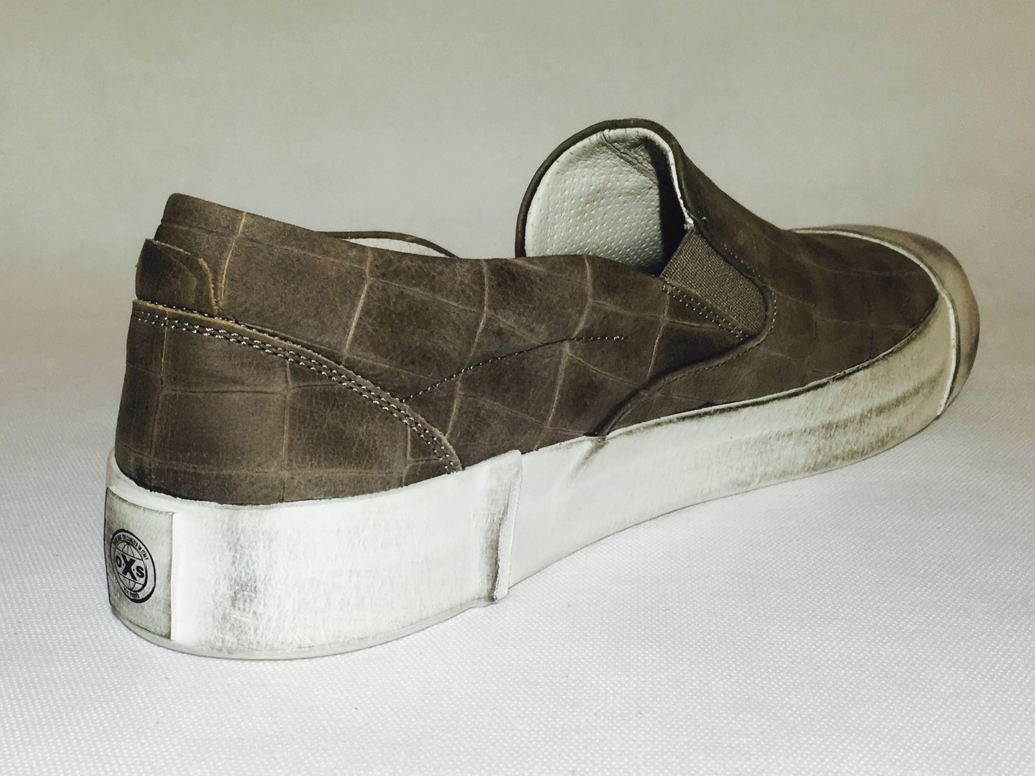 OXS sneakers slip on in pelle taupe stampa cocco, plantare anatomico estraibile, suola in gomma