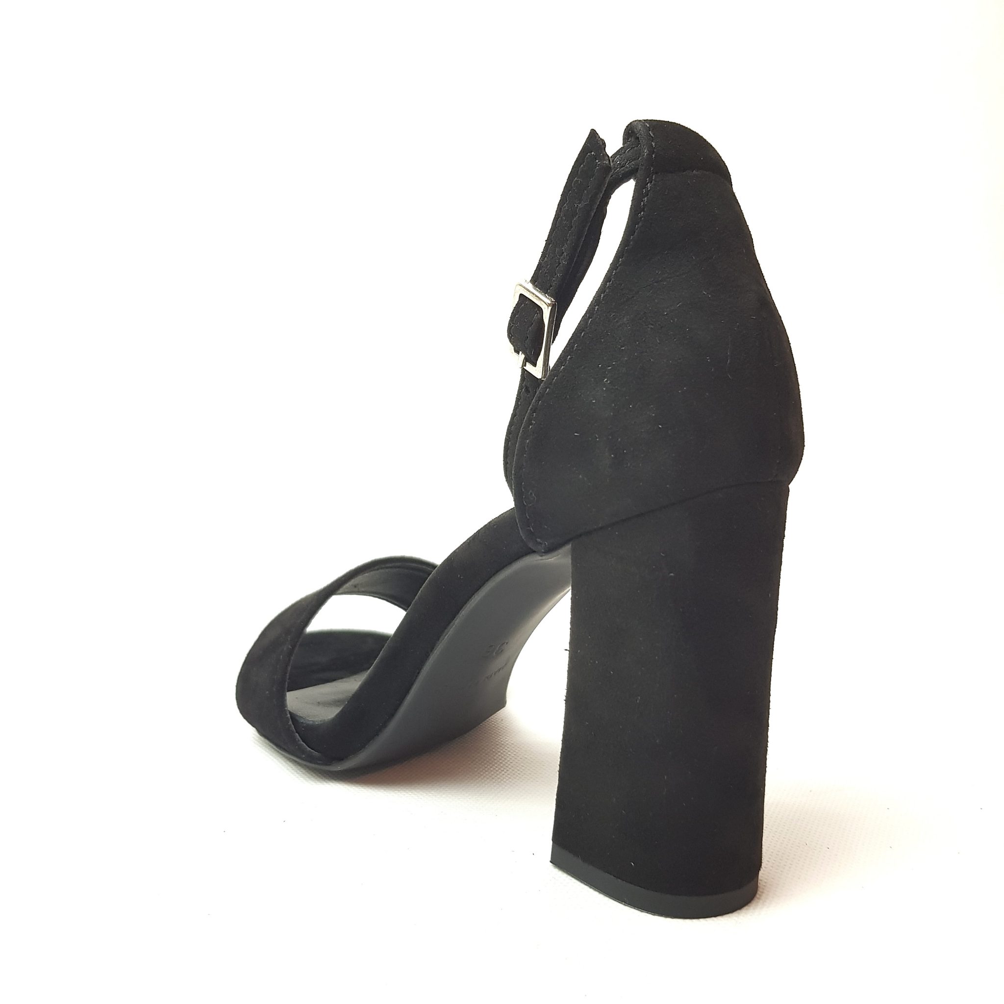 Zero Poesie sandalo in suede nero con tallone chiuso. Allacciatura regolabile. Tacco 9 cm Fondo gomma. Made in Italy.