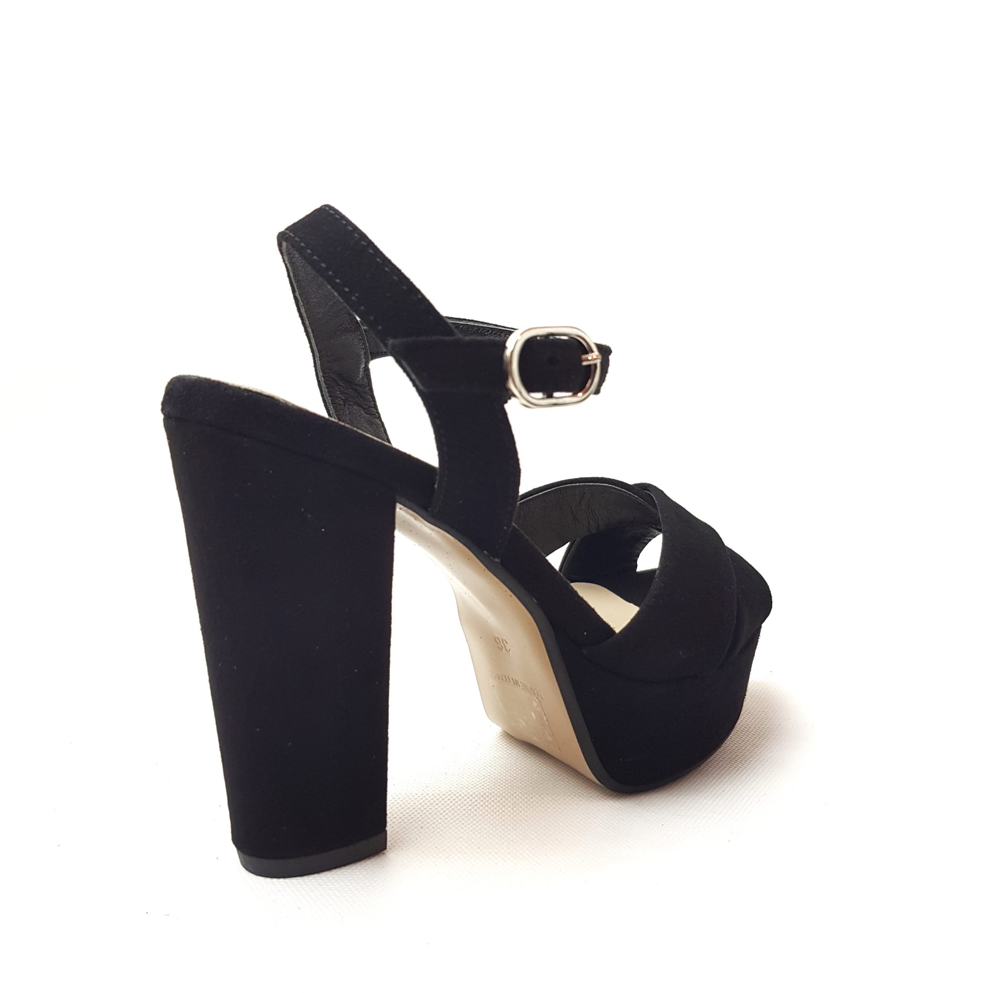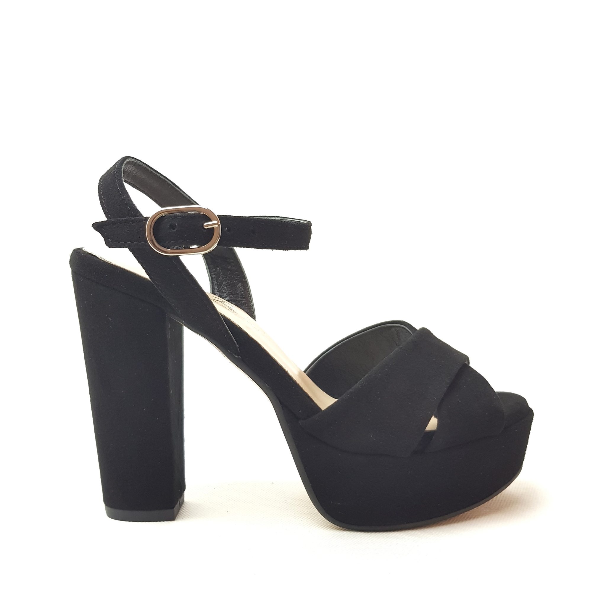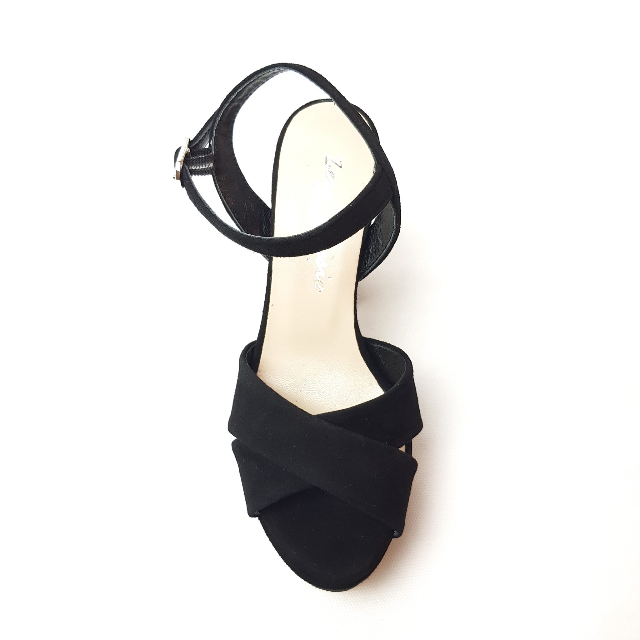 Zero Poesie sandalo platform in suede, dettaglio fascia a incrocio. Tacco 10,5 cm, platform 3 cm. Fondo cuoio, gomma. Made in Italy