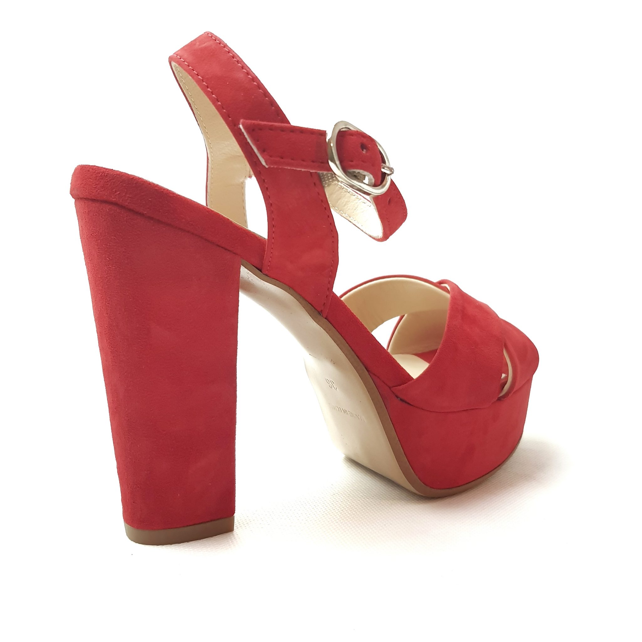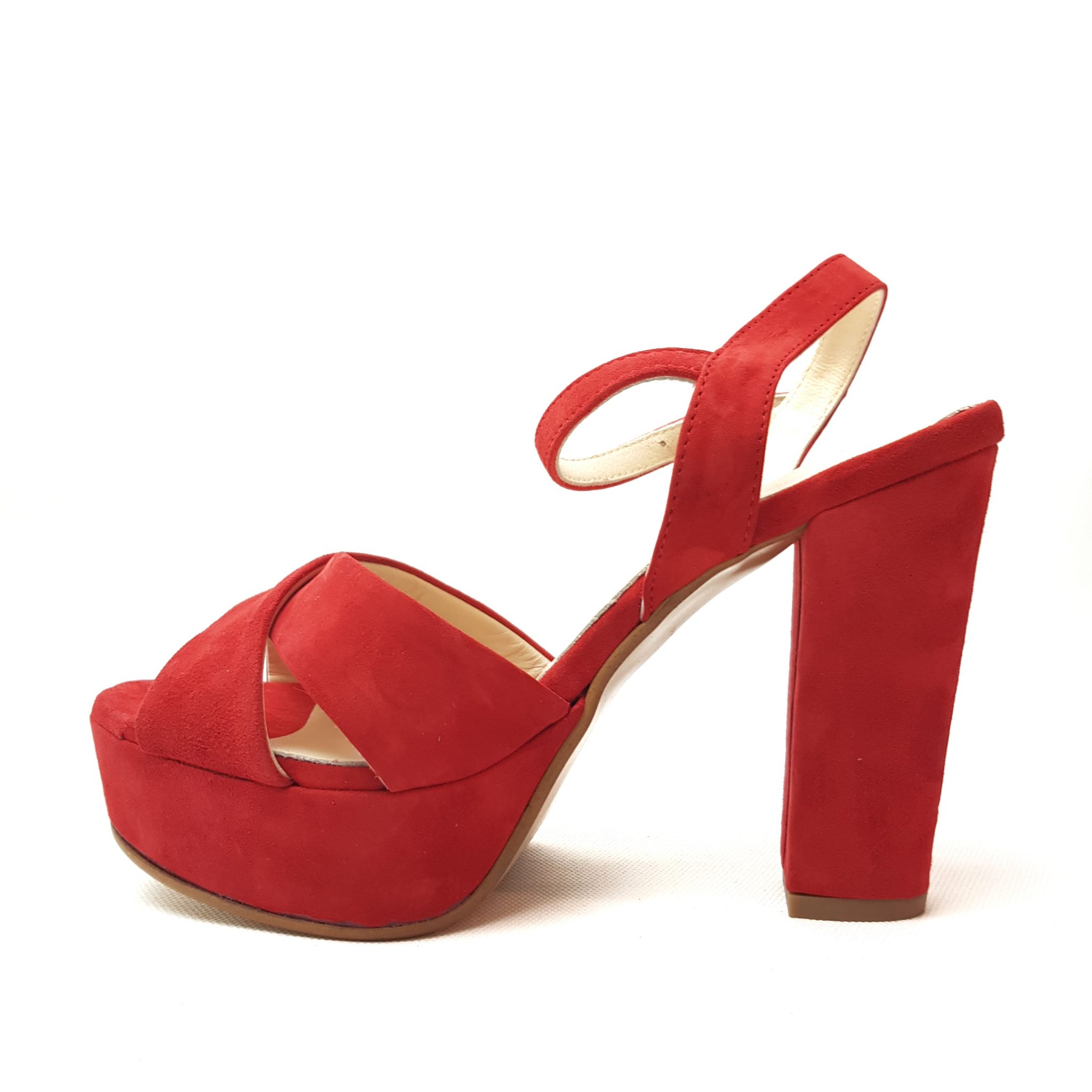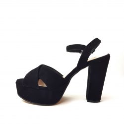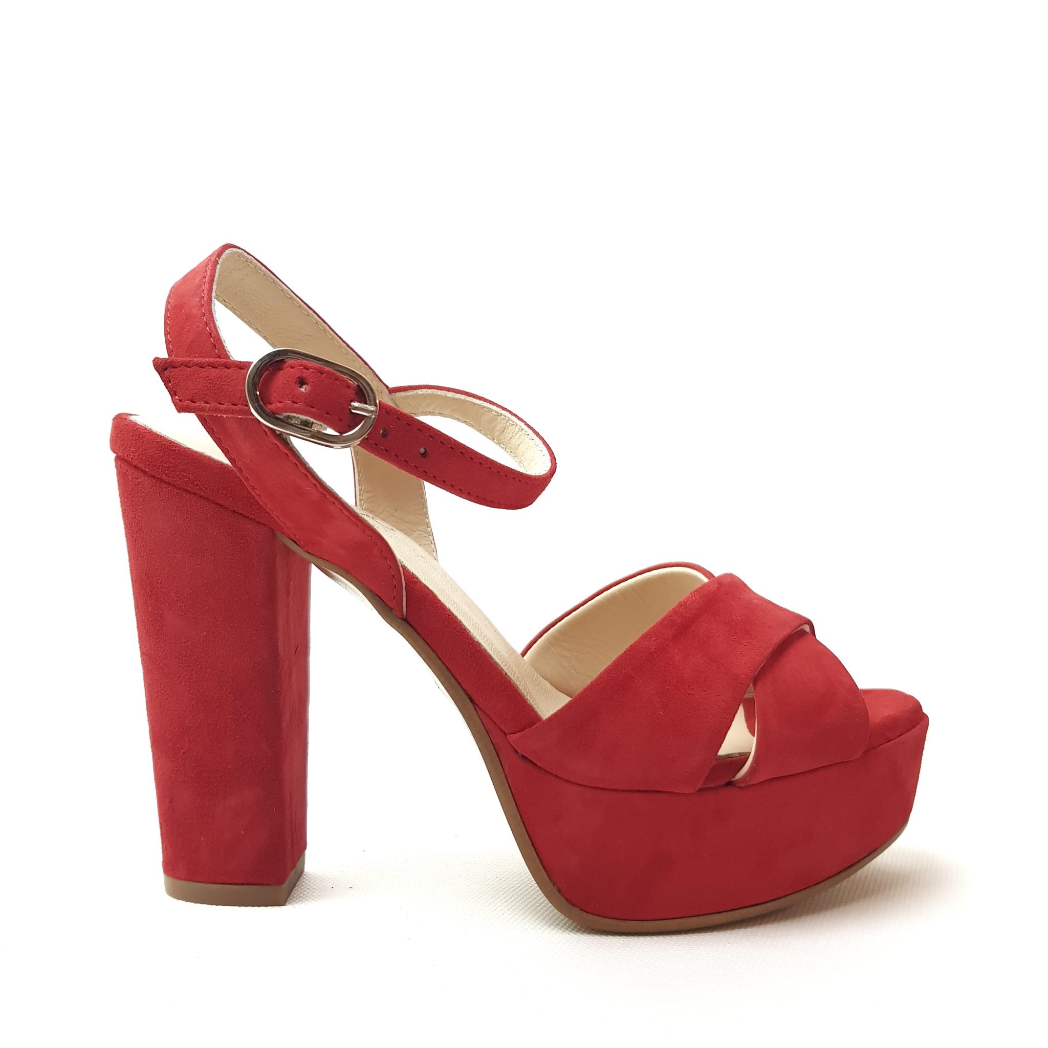 Zero Poesie sandalo platform in suede, dettaglio fascia a incrocio. Tacco 10,5 cm, platform 3 cm. Fondo cuoio, gomma. Made in Italy