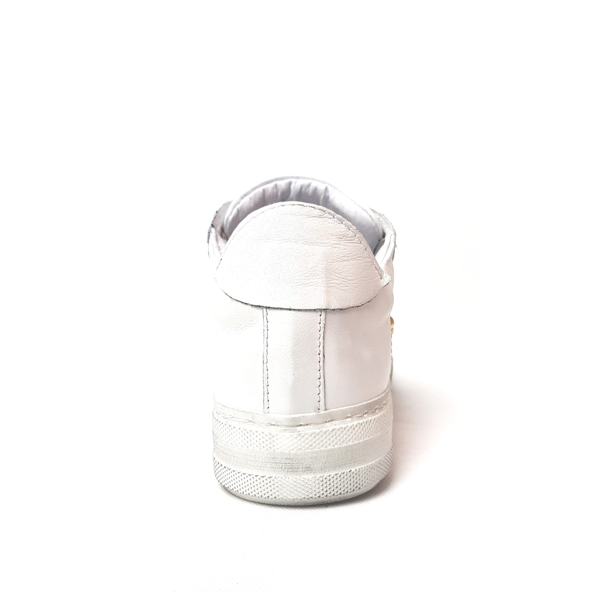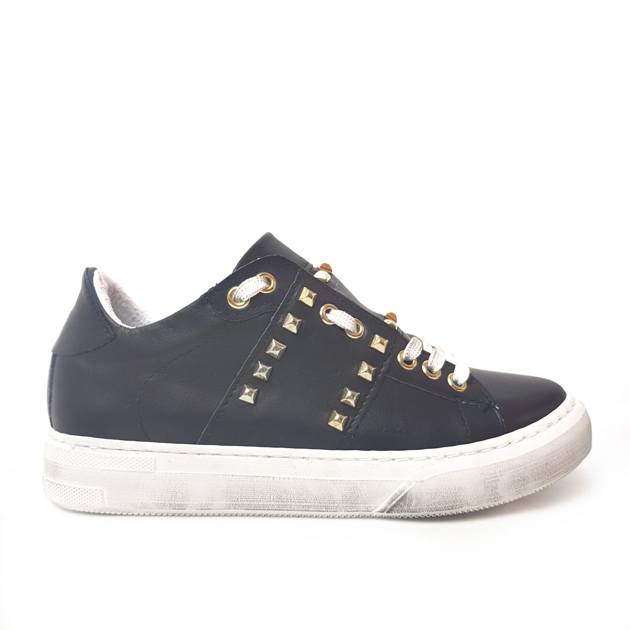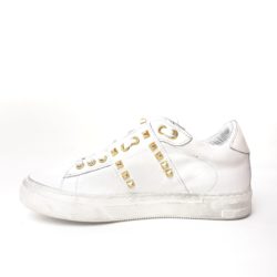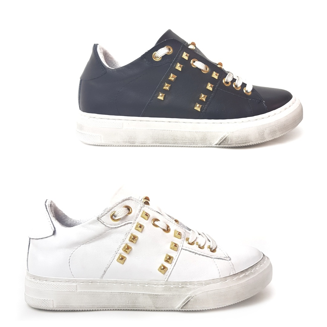 Zero Poesie sneakers in vera pelle con dettaglio borchie dorate, disponibile nelle varianti bianco e nero. Plantare super confort. Made in Italy