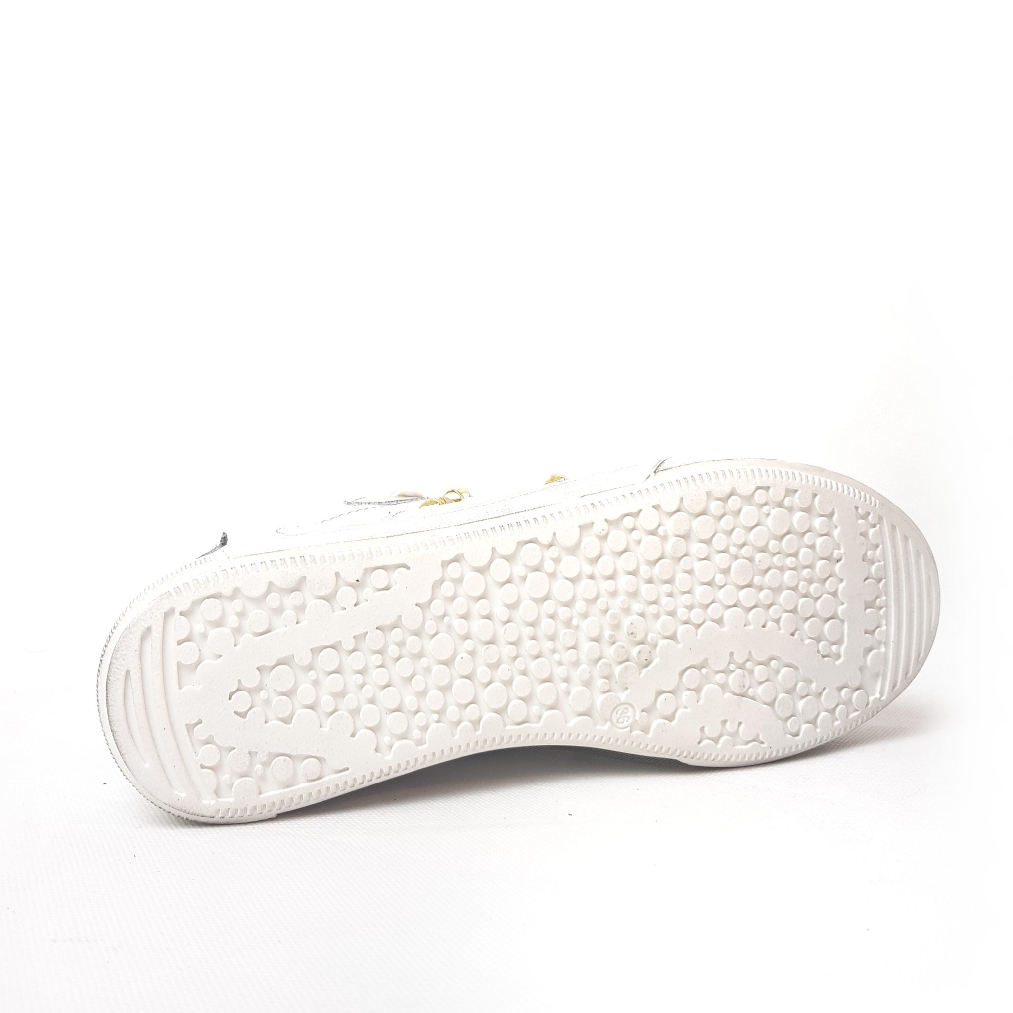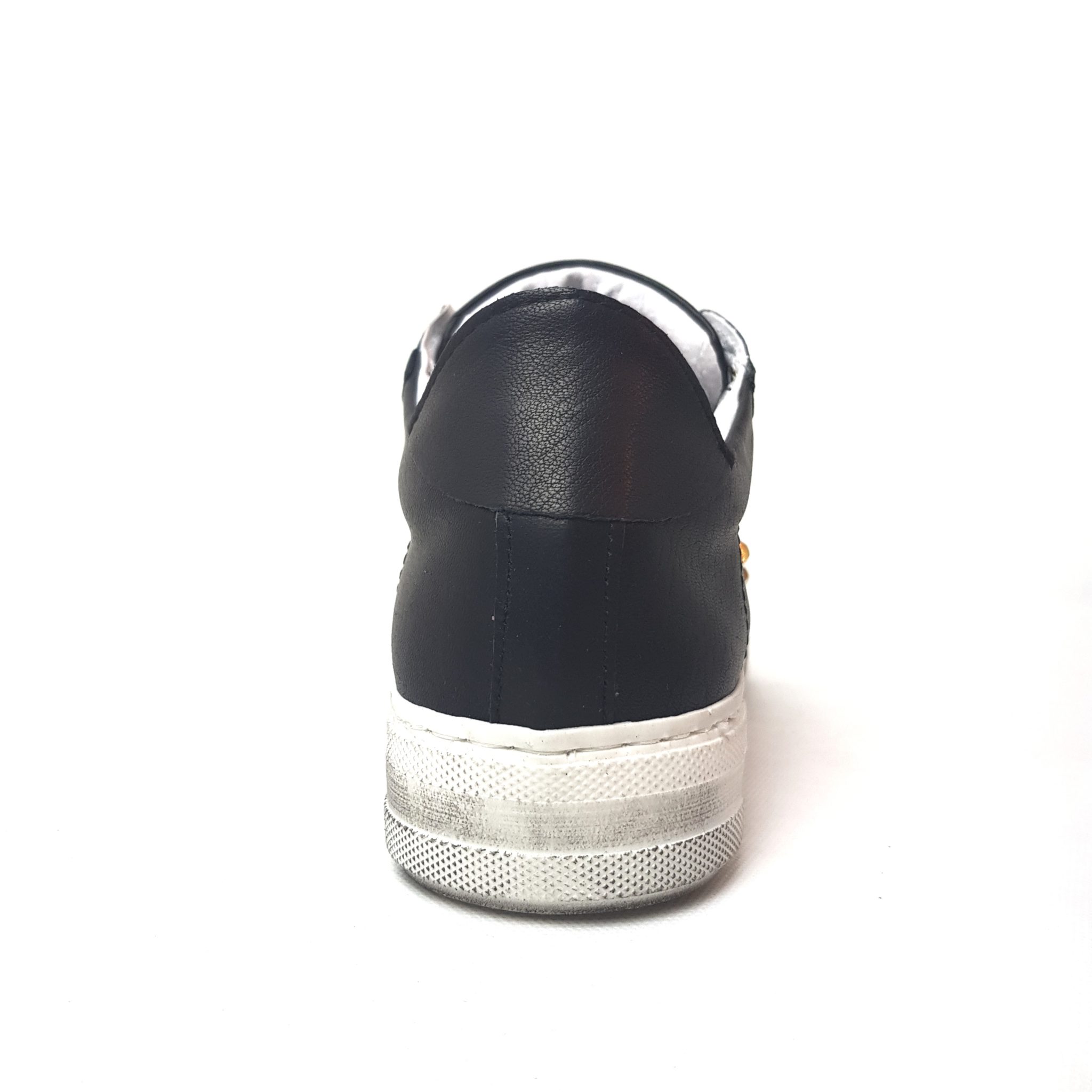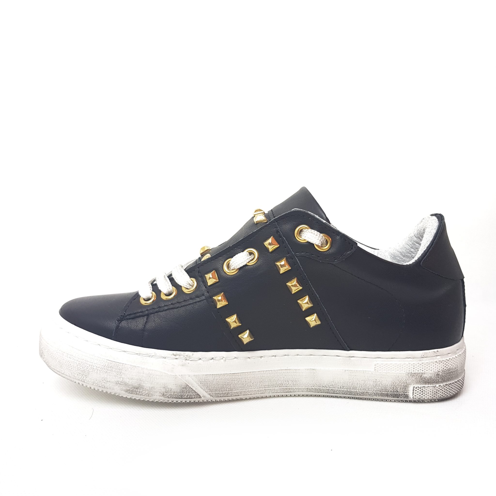 Zero Poesie sneakers in vera pelle con dettaglio borchie dorate, disponibile nelle varianti bianco e nero. Plantare super confort. Made in Italy