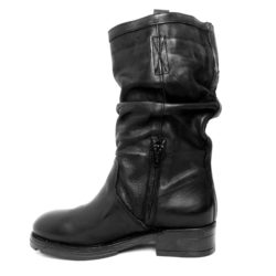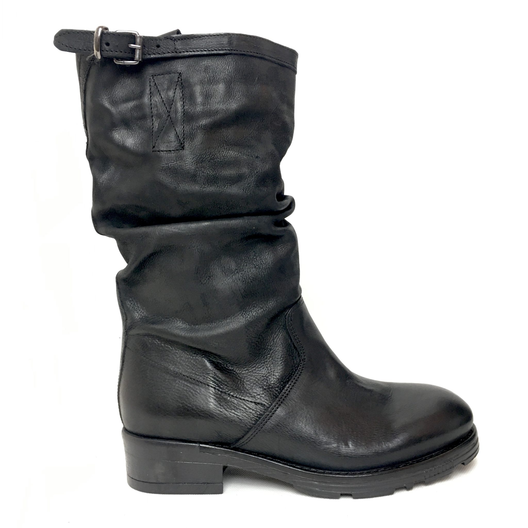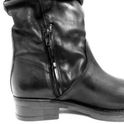 Stivale biker in pelle calf nera, fodera in maglina fibbia antracite regola gambale, zip interna 12 cm, suolain gomma tacco cm 3.5.100% Made in Italy